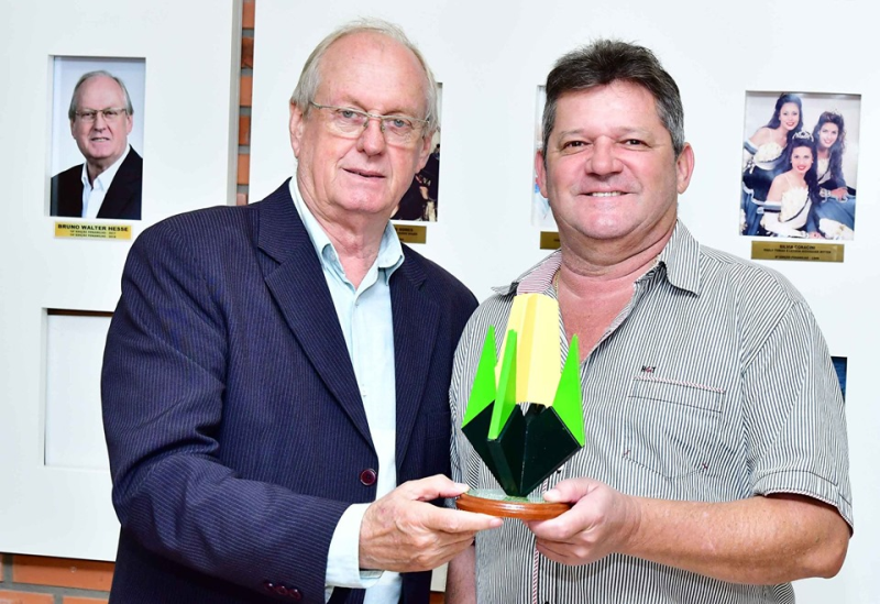 A Agrofutura também foi homenageada. O representante comercial Itaner Henkes, em nome do empresário Roni Passos, recebeu das mãos do presidente Bruno Hesse, a homenagem pelo patrocínio e pela importante participação nesta 19ª edição da feira, junto à área do milho instalada no Parque de Exposições Siegfried Ritter.