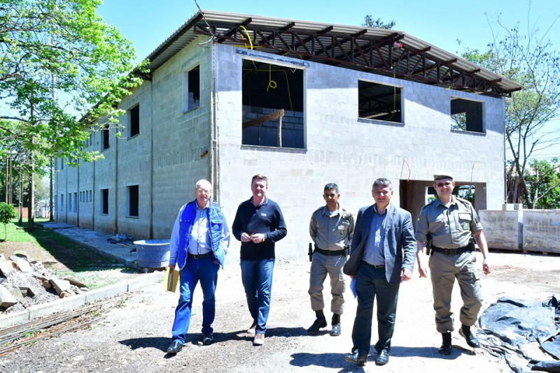 Após o ato de repasse dos valores, a comitiva esteve em visita às obras do núcleo de qualificação de policiais militares.