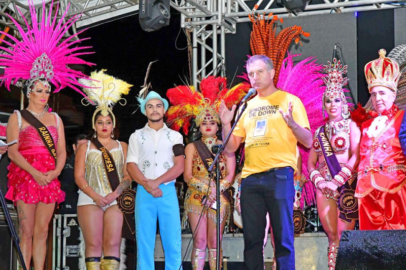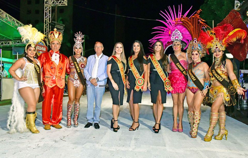 Também marcaram presença na avenida do samba, as soberanas da 19ª FENAMILHO Internacional, Rainha Fabiane da Silva Koaski, e as princesas Thaís Lersch e Daniele Lange.