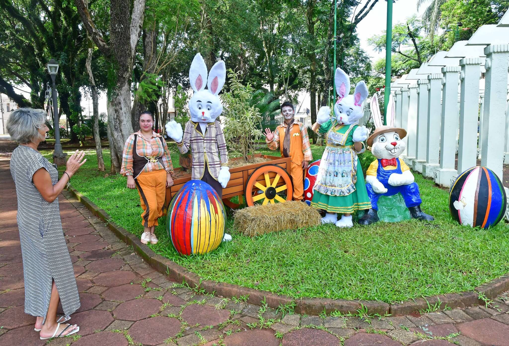Já em clima de Páscoa, a Casa do Coelho montada na Praça Pinheiro Machado está recebendo visitantes.