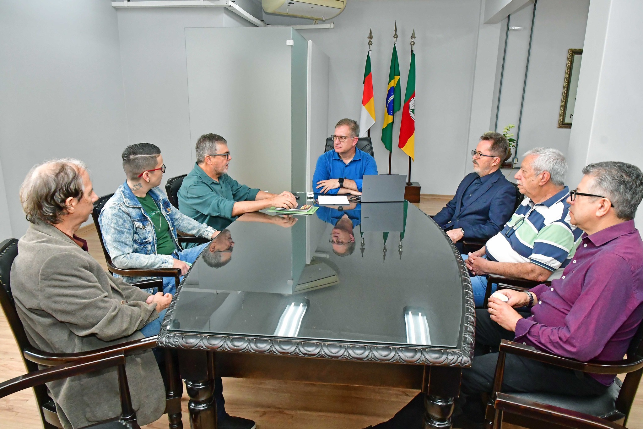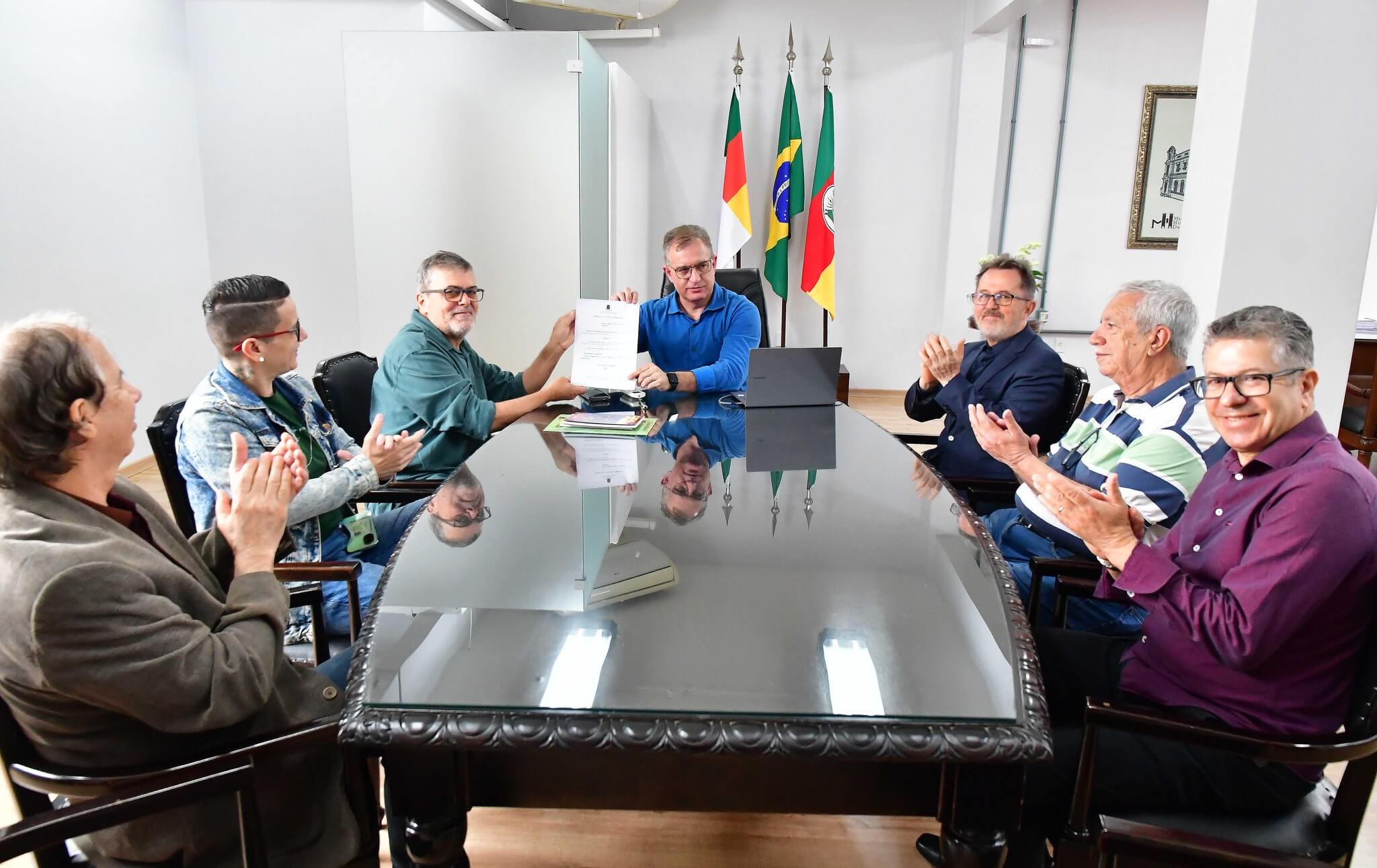 A reunião contou ainda com as presenças dos secretários municipais Jânio Bones (Governo e Relações Institucionais) e João Baptista Santos da Silva (Desenvolvimento Econômico, Turismo e Inovação); advogado Paulo Leal, coordenador do Instituto Histórico; Jerson Fontana, membro do IHGSA e Juliani Borchardt, presidente do Conselho Municipal de Políticas Culturais.