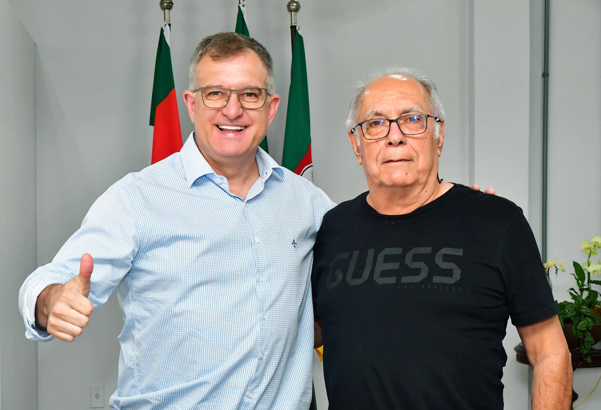 O engenheiro agrônomo Antônio Carlos da Veiga Mello foi recebido pelo prefeito Jacques Barbosa e pelo secretário de meio Ambiente e Desenvolvimento Urbano, na tarde desta terça-feira, 12, para marcar a sua despedida do serviço público municipal depois de 21 anos atuando na Prefeitura de Santo Ângelo.