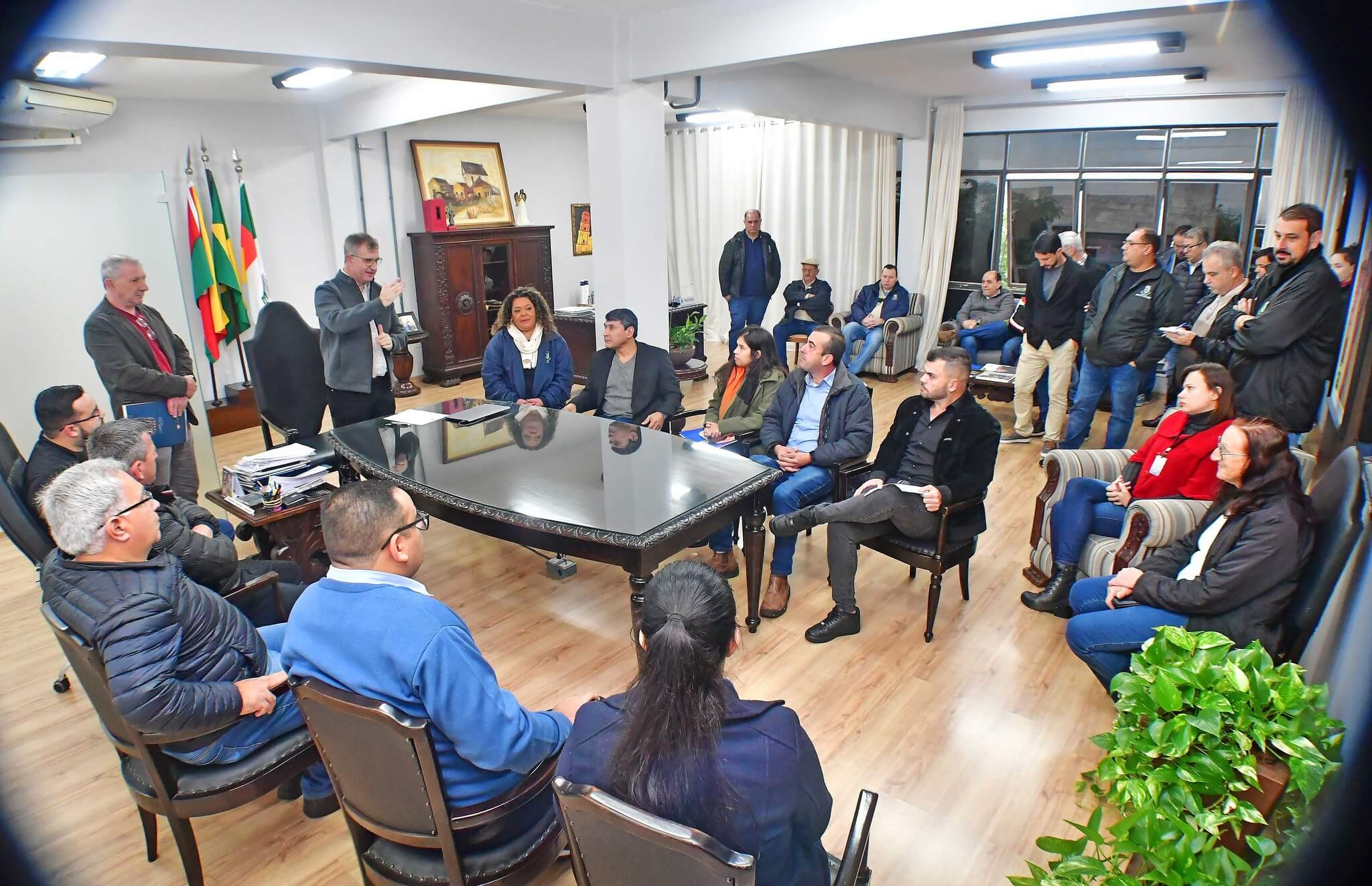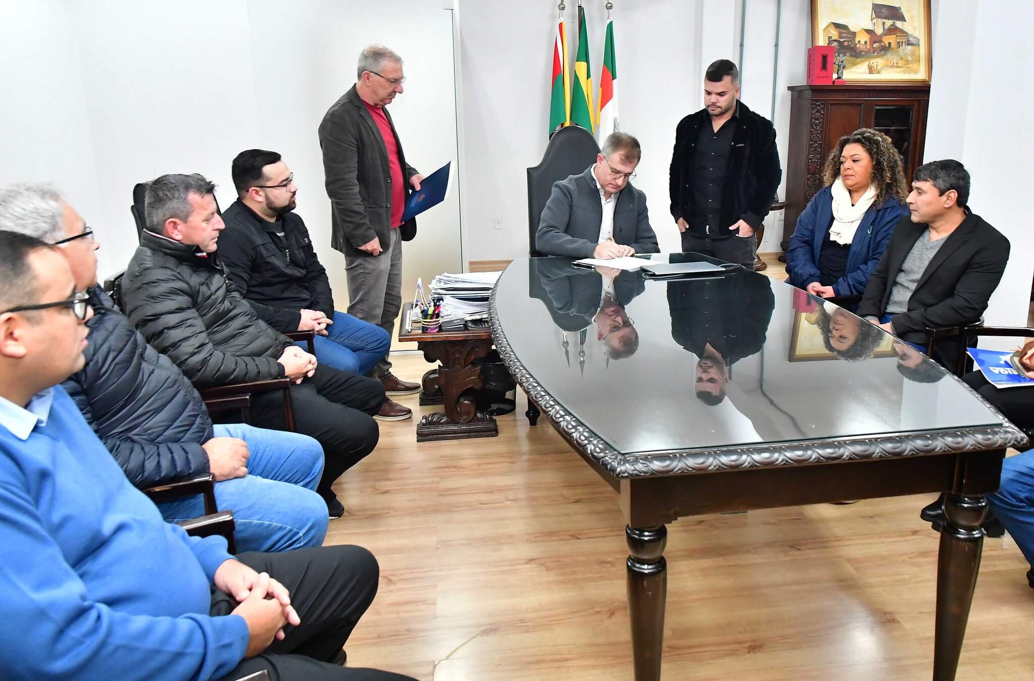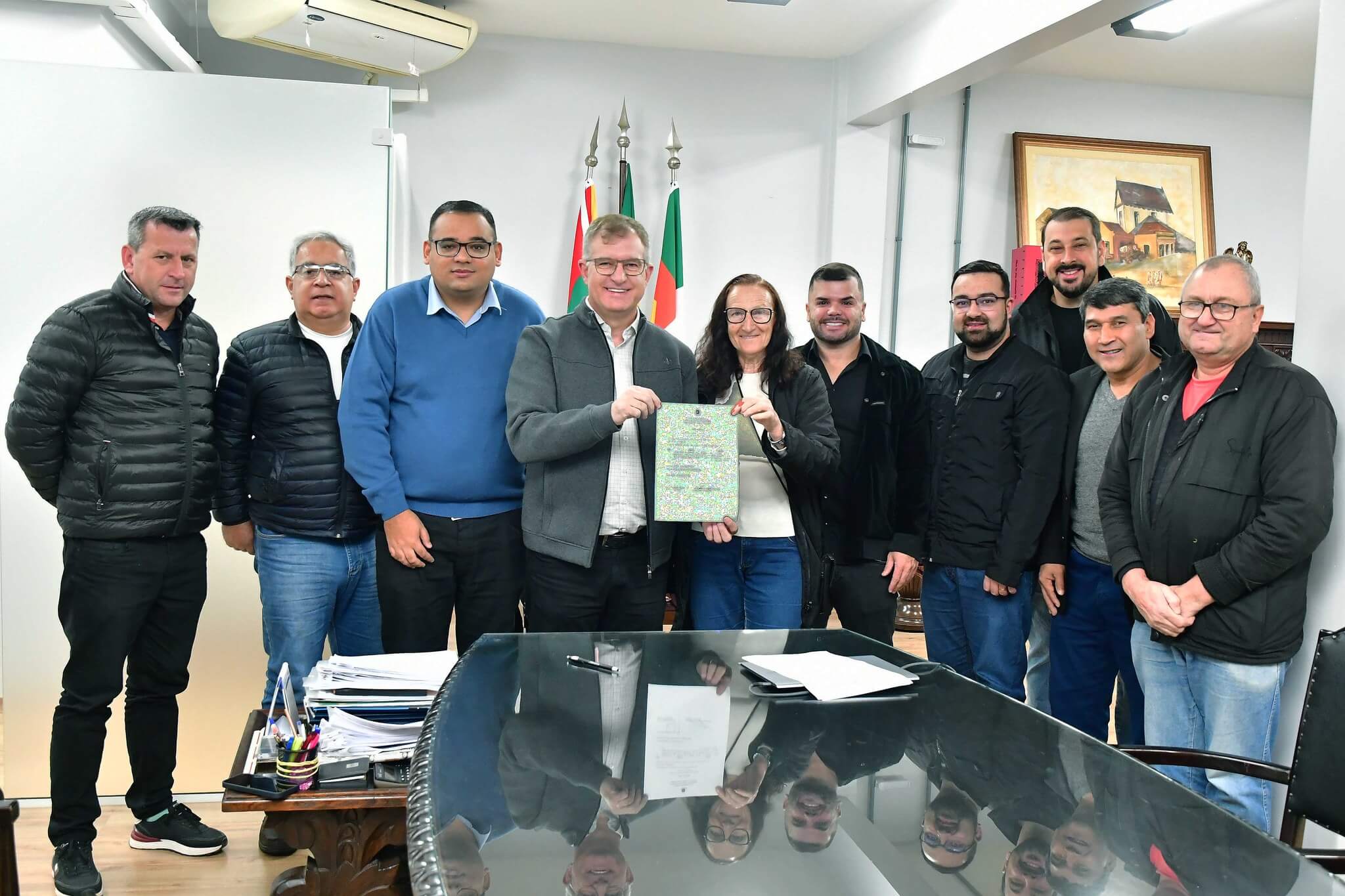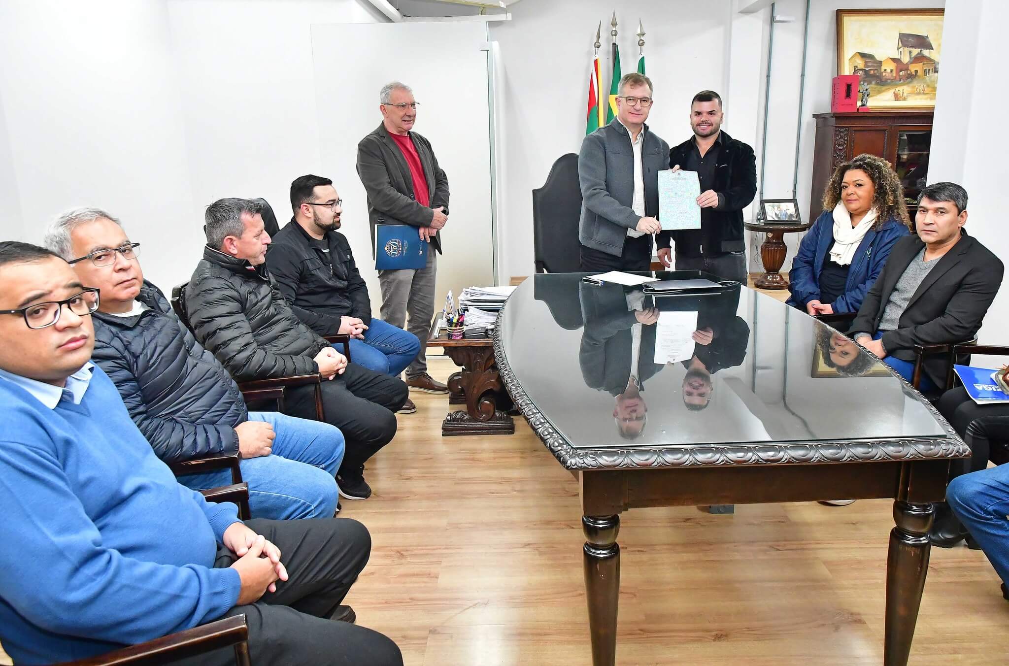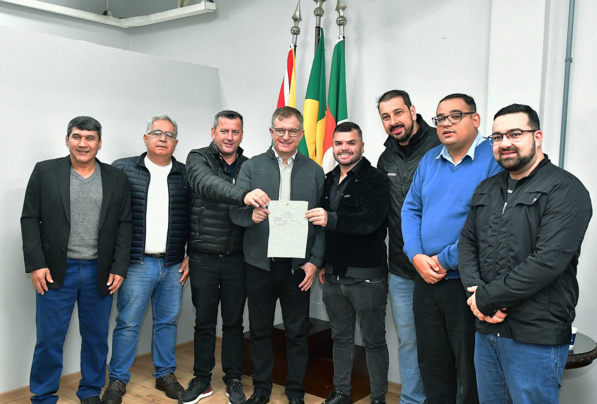 Acompanharam o ato, o presidente da Câmara de Vereadores, Felippe Terra Grass; secretários municipais Jânio Bones (Governo e Relações Institucionais), João Baptista Santos da Silva (Desenvolvimento Econômico, Turismo e Inovação) e Antônio Cardoso (Meio Ambiente e Desenvolvimento Urbano), vereadores e membros do Conselho Municipal de Habitação.