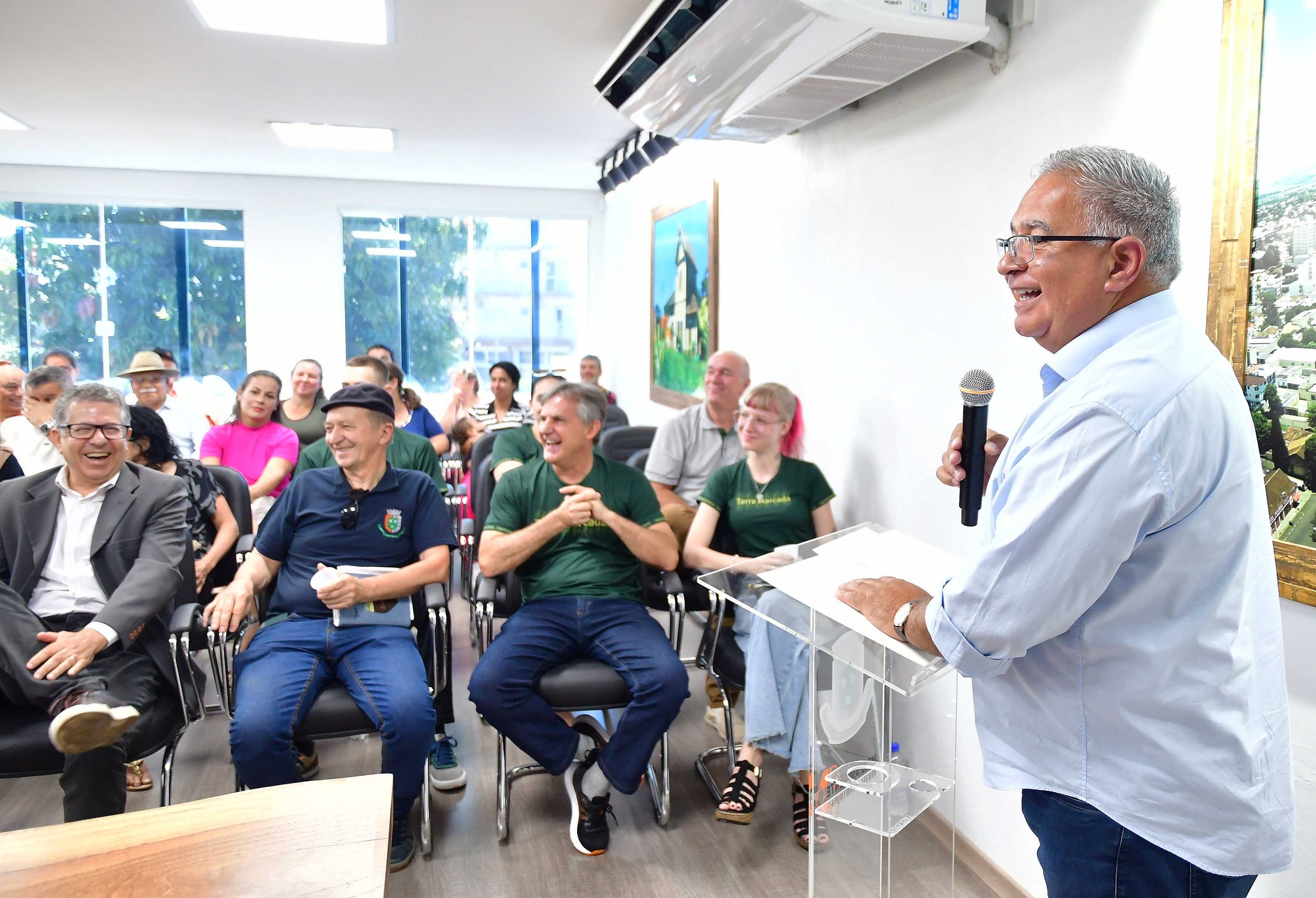 Na manhã desta quinta-feira, 26, foi realizado o ato de entrega de 45 escrituras do Programa de Regularização Fundiária (Reurb). Foram beneficiadas famílias do Loteamento Backes, localizado no Bairro Ditz. Eles integram o projeto que abrange ainda os bairros Colméia e Garibaldi Carrera Machado (Indubras). O ato ocorreu no auditório da Secretaria Municipal de Meio Ambiente e Desenvolvimento Urbano.
