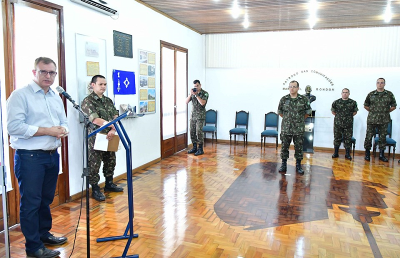 No final da manhã de quarta-feira, 11, foi inaugurada placa comemorativa ao centenário da presença do Exército brasileiro na Capital das Missões. O ato foi realizado no auditório do 1º Batalhão de Comunicações e contou com as presenças do comandante tenente-coronel Vladimir Bancke da Silva, do prefeito Jacques Barbosa; secretários municipais Luis Carlos Cavalheiro (Saúde), Vando Ribeiro de Souza (Turismo) e João Batista Santos da Silva (Indústria e Comércio); Simone Lunkes, coordenadora municipal de Políticas Públicas para as Mulheres, praças e oficiais do B Com.