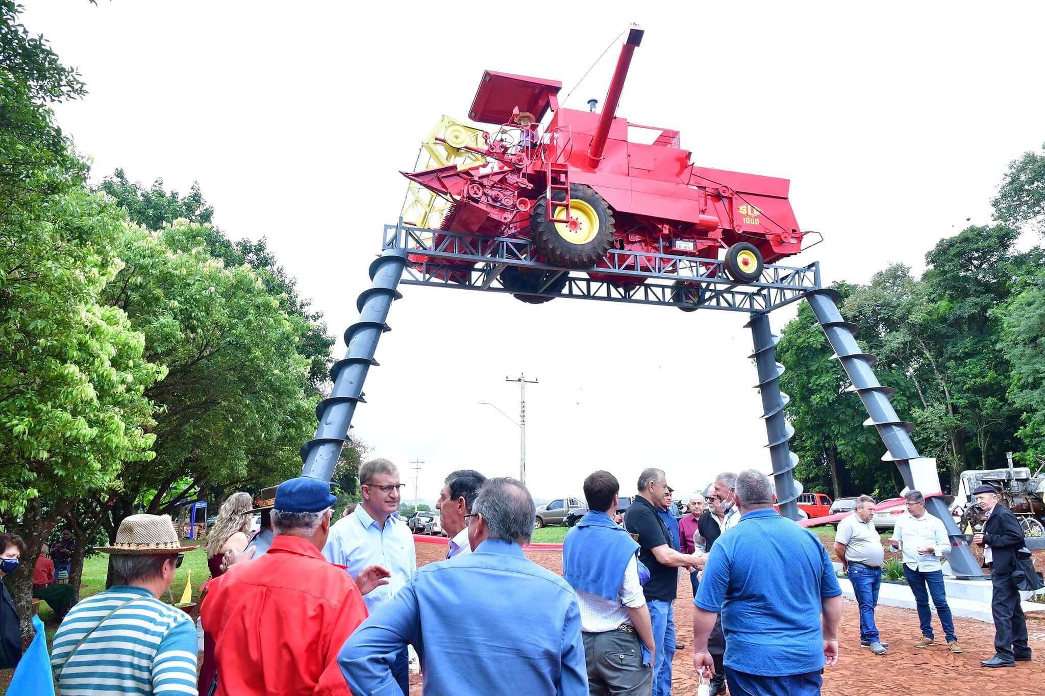 O pórtico foi idealizado pelo produtor rural Alberto Faccin Copetti, que adquiriu uma colheitadeira SLC 1000 dos produtores Clóvis Alberto Copetti e Luis Carlos da Silva e doou para ser colocada no alto do pórtico. Nas laterais estão o trator doado por Gilberto Dalsin e família, um Valmet 360 Diesel do ano de 1963, restaurado pela Polisul Agrícola de Santa Rosa, e o trator Deutz de 1938, primeiro trator agrícola de Santo Ângelo, importado da Alemanha e utilizado na Granja Fett Comandaí Ltda de Alfredo Fett e Léo Petersen Fett. "Em pesquisa realizada, acreditamos que este é o primeiro pórtico com uma colheitadeira existente em todo o país", disse Alberto Copetti.