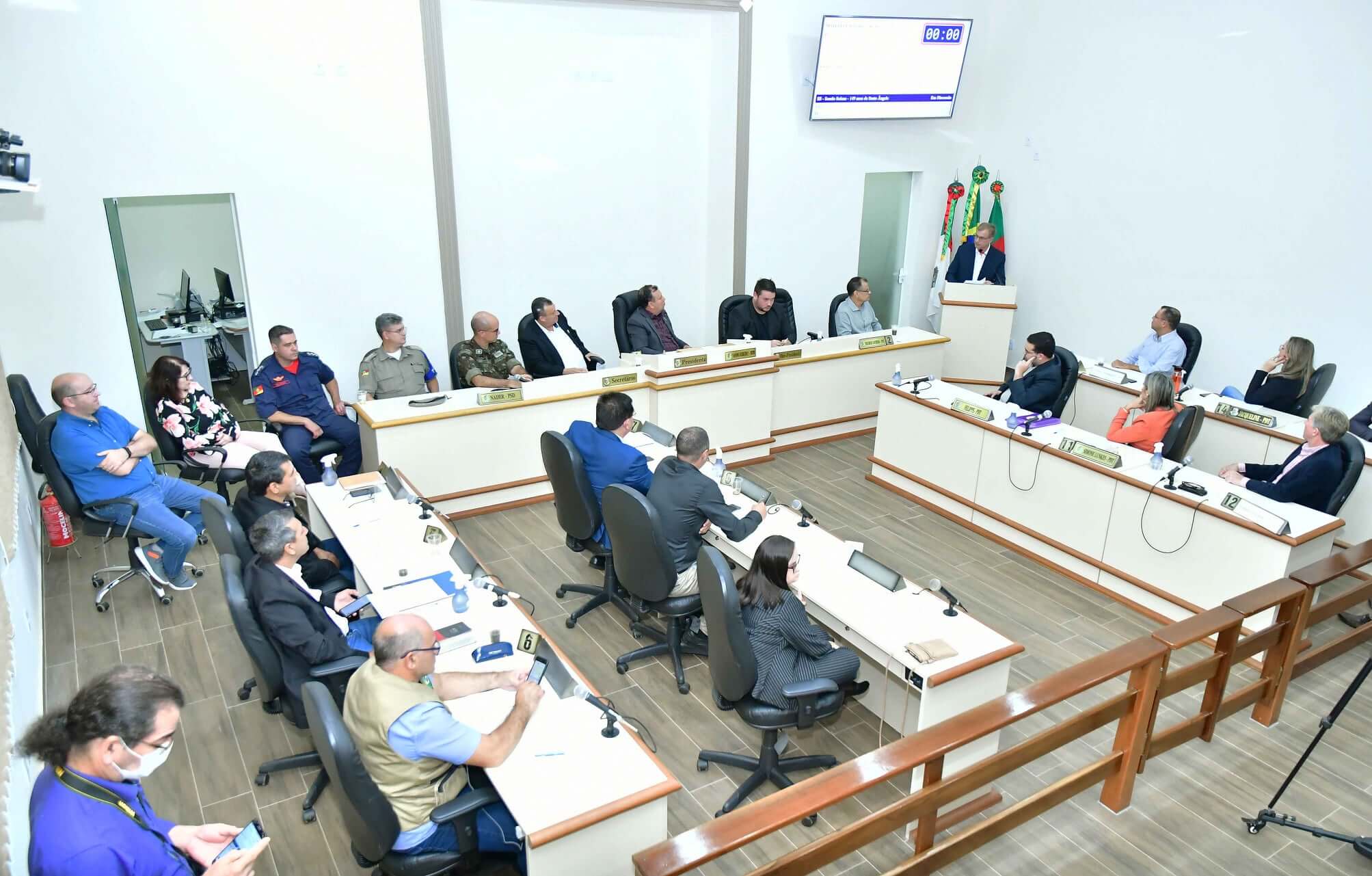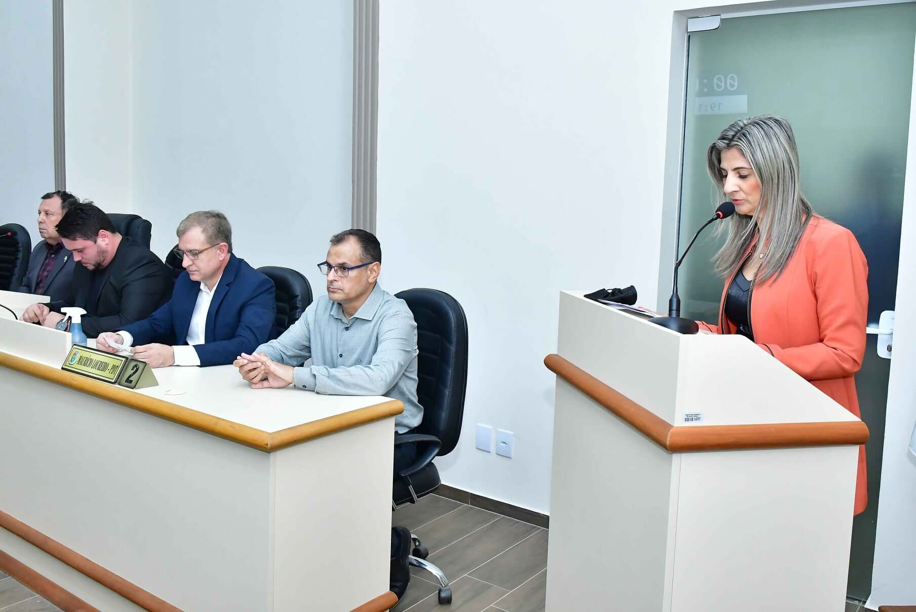 Na sessão solene, presidida pelo vereador Vando Ribeiro de Souza (MDB), a vereadora Simone Lunkes (PDT), foi oradora, representando os demais legisladores. A novidade no plenário da Câmara foi à presença dos vereadores suplentes Luana Rolim de Moura e Dionísio Faganello.