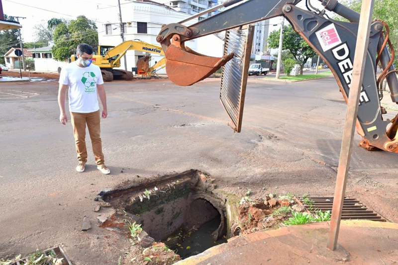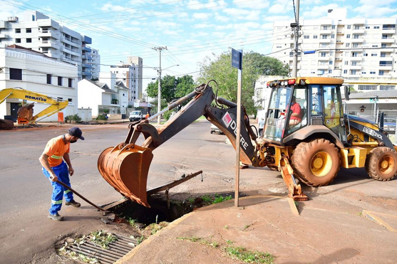 Uma obra importante para garantir o escoamento das águas das chuvas da área central de Santo Ângelo está sendo realizada pelo Governo Municipal. São 620 metros de rede de drenagem pluvial com investimento de R$ 900 mil, com recursos do Fundo de Gestão Compartilhada.