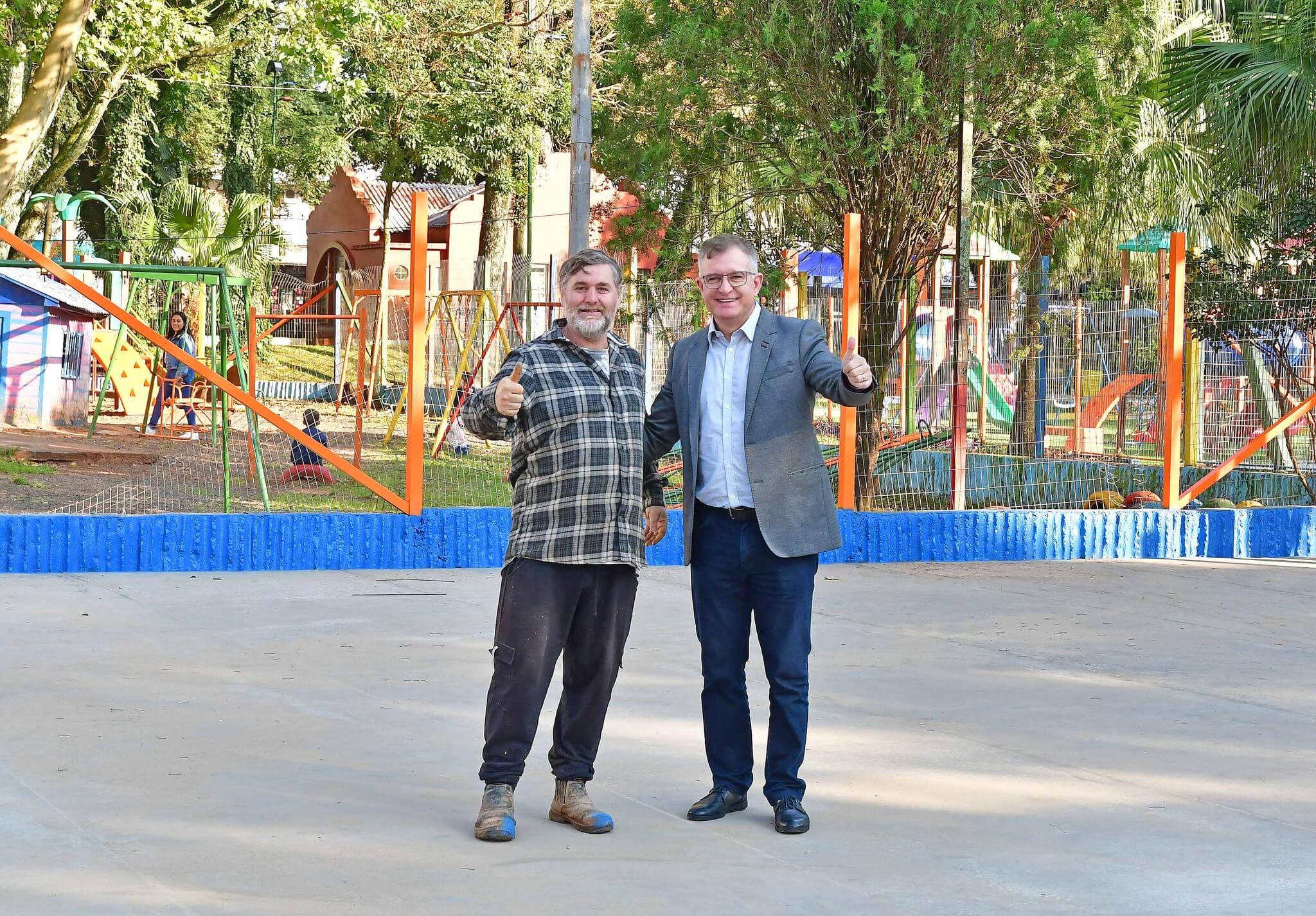 Outro local visitado pelo prefeito foi a Praça Leônidas Ribas, que segue recebendo melhorias. O novo e amplo parque infantil tem recebido muitos elogios da comunidade. As mães que estavam no local registraram elogios e agradecimentos pelo novo espaço. Também foi recuperada a quadra de basquete e as obras seguem, com revitalização da quadra de esportes do Jardim da Infância Bem-Me-Quer. Jacques comentou que nos próximos dias devem ser anunciadas outras melhorias no local.