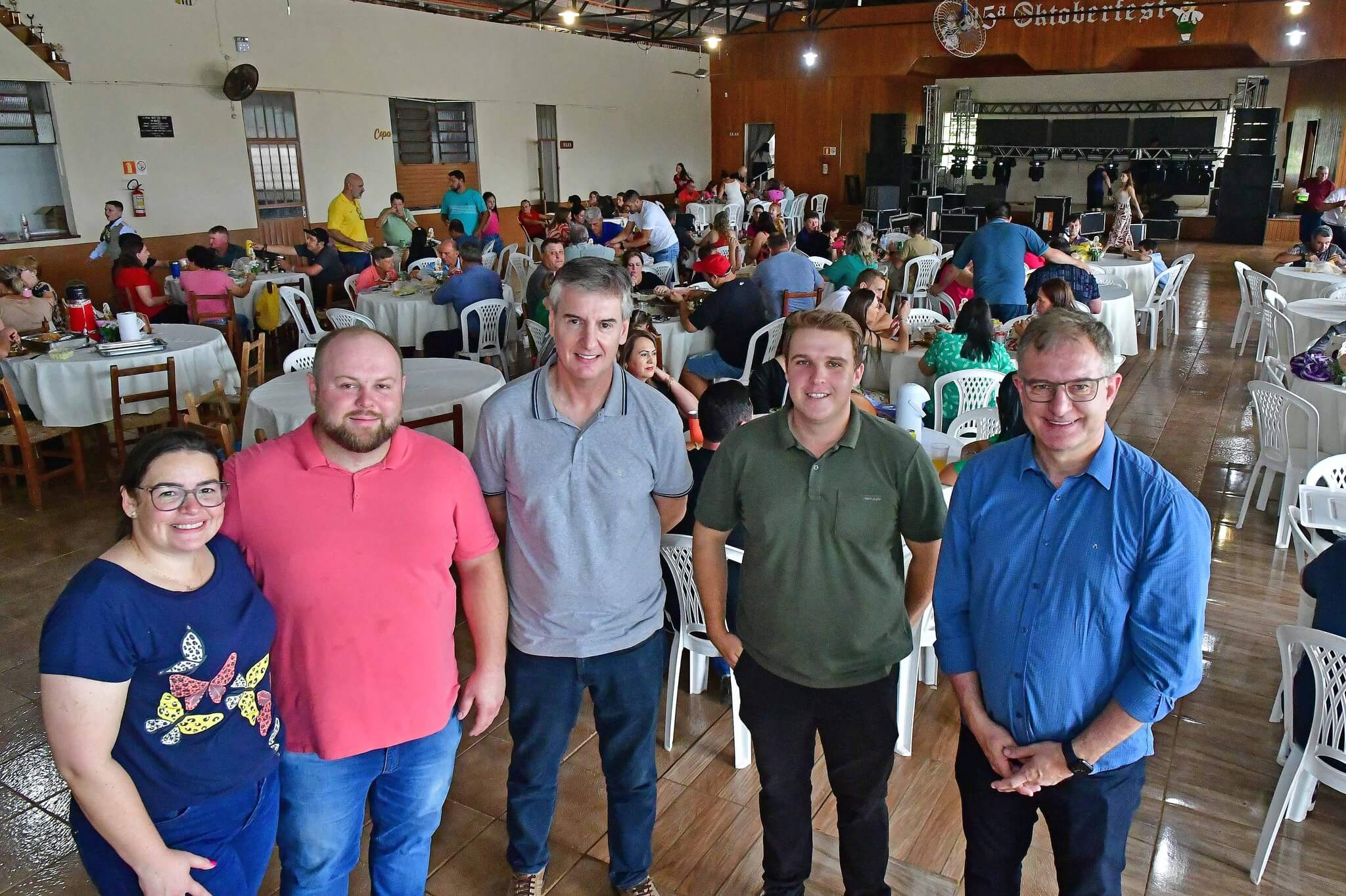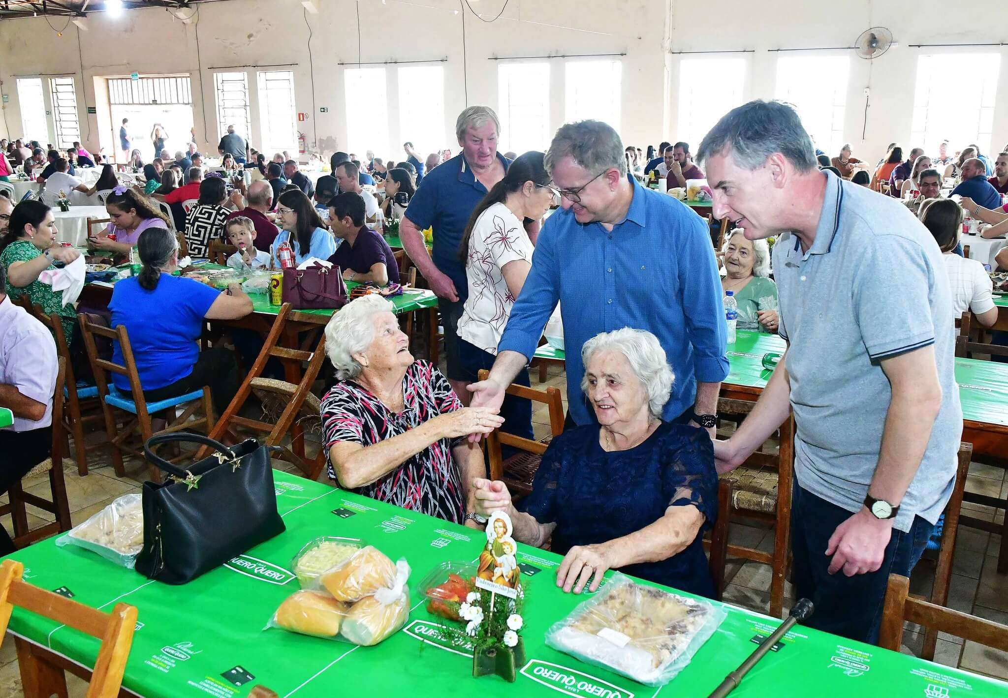 Prestigiaram o ato, o deputado estadual Eduardo Loureiro; vereadores Jaqueline Possebom, Gilberto Corazza e Nivaldo Langer de Moura, o Nêne; secretários municipais Adolar Queiroz (Desenvolvimento Rural), Jânio Bones (Governo e Relações Institucionais) e Hasadias Amaral da Silva (Planejamento); Daniel Casarin, presidente do Sindicato dos Trabalhadores Rurais; Diomar Formenton, coordenador de Agroindústrias e Programas da Secretaria Municipal de Desenvolvimento Rural e presidente da 11ª Feaagri Missões; Raufiele Copetti, presidente da Comunidade; Jovita Machado Copetti, presidente do Clube de Mães e Vanderlei Coletto Cela, da Associação de Agricultores.
