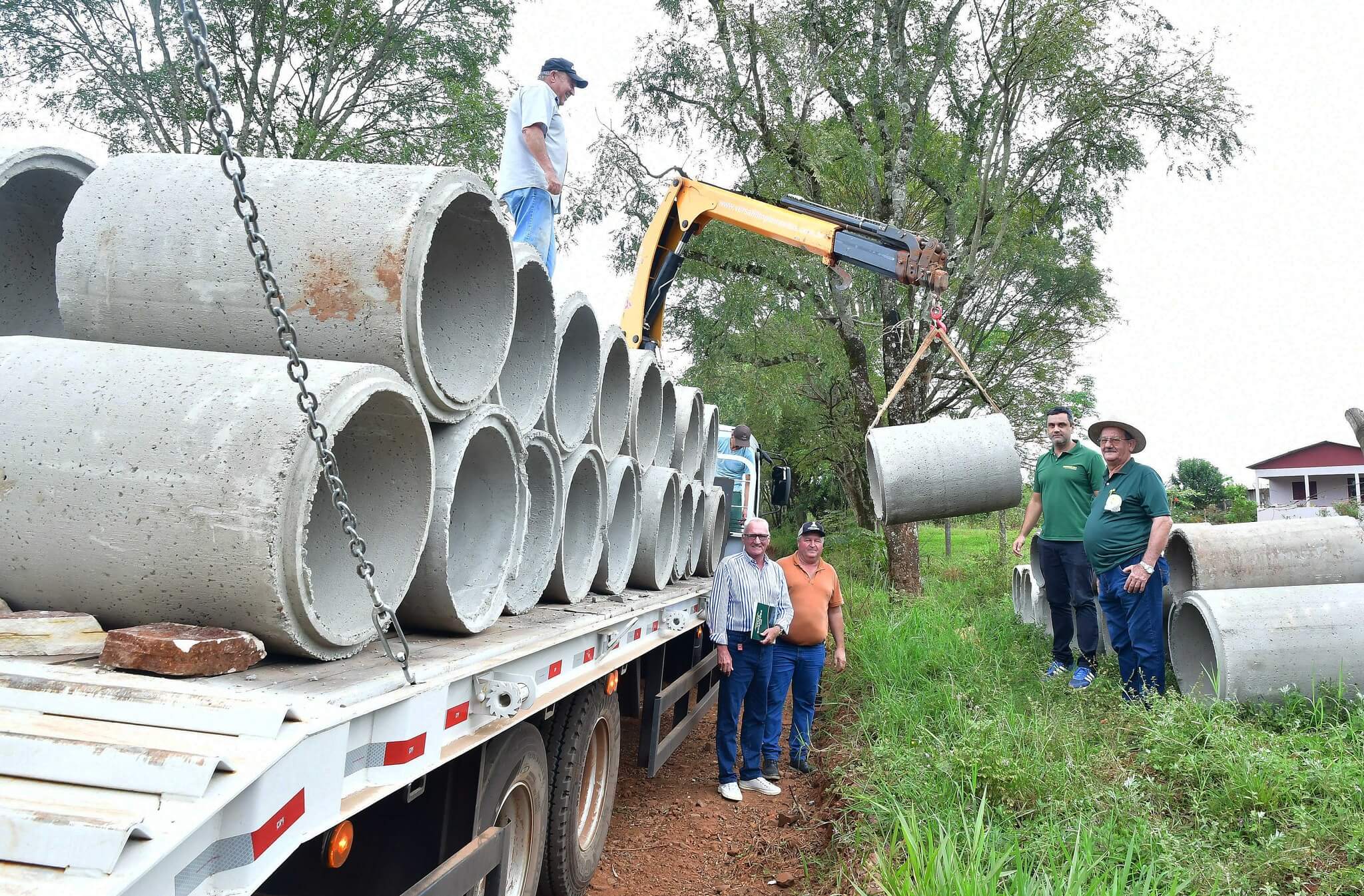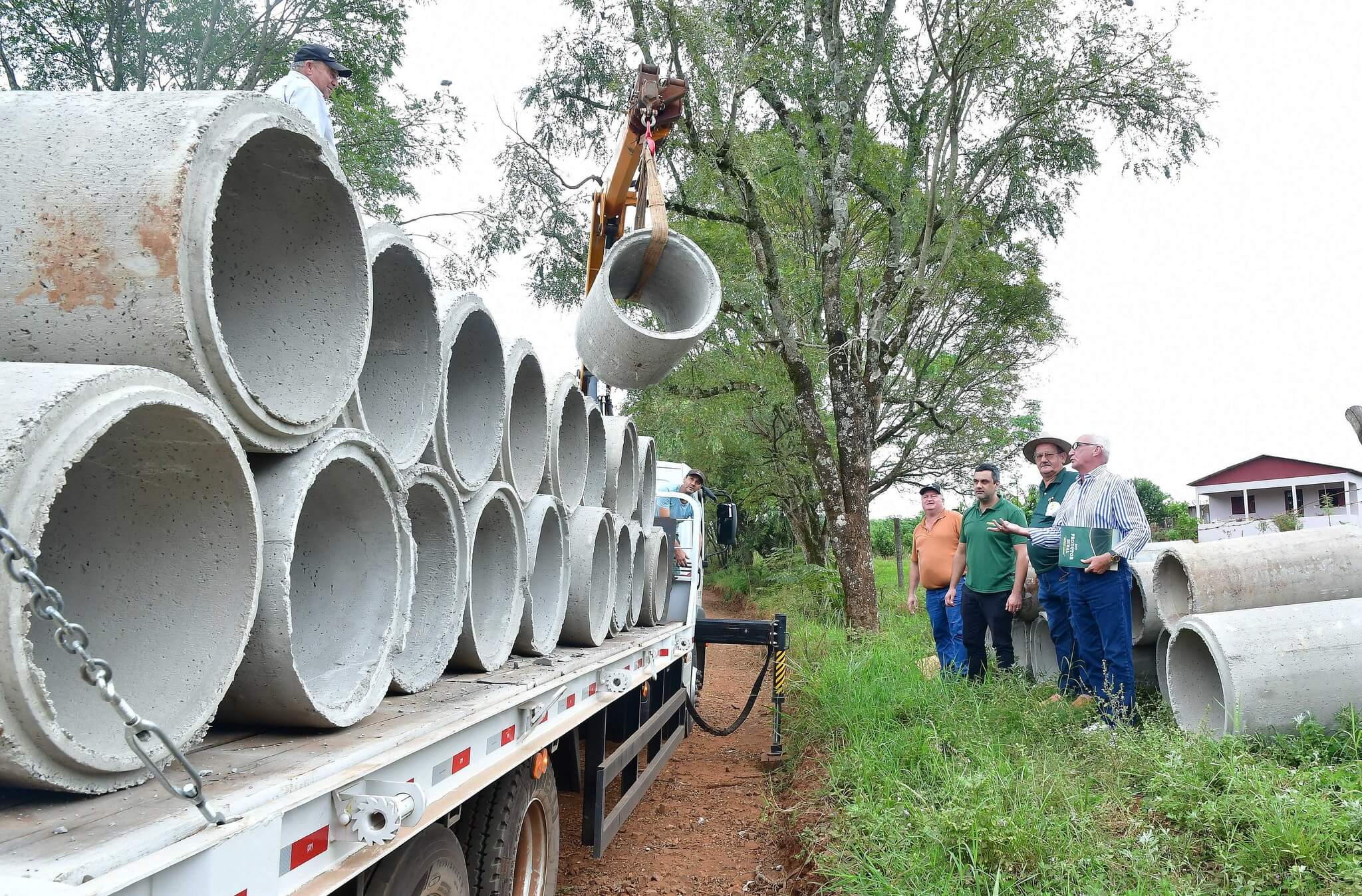 Foi iniciada nesta quinta-feira, 4, a primeira etapa da entrega dos tubos de concreto de 60 cm para proprietários rurais que se cadastraram na ação do Fundestradas.
