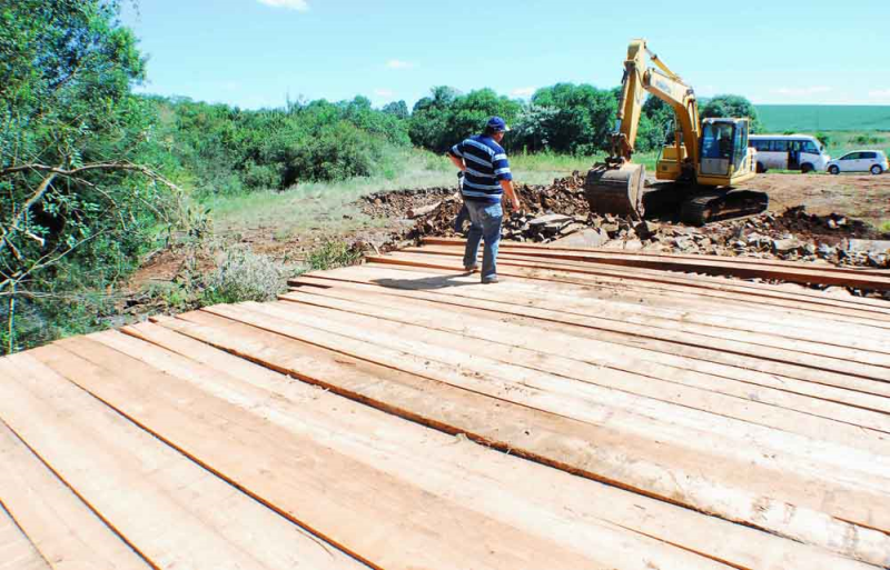 Para dar lugar à nova ponte, a equipe dos Transportes está retirando velhos tubos de concreto que já não suportavam mais a vazão de chuvas acima de 50 milímetros de precipitação e construindo passagem em madeira. Conforme Cargnelutti, o Governo Municipal cedeu madeira, a concretagem, mão de obra e serviços de aterro, enquanto a comunidade participa da construção com a doação de parte do material de sustentação da ponte.