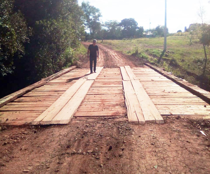 Terra informou que a equipe está trabalhando nesta semana, na reconstrução da ponte sobre o Rio Buriti, com 17 metros de comprimento e seis metros de altura, na Travessa Rockembach.