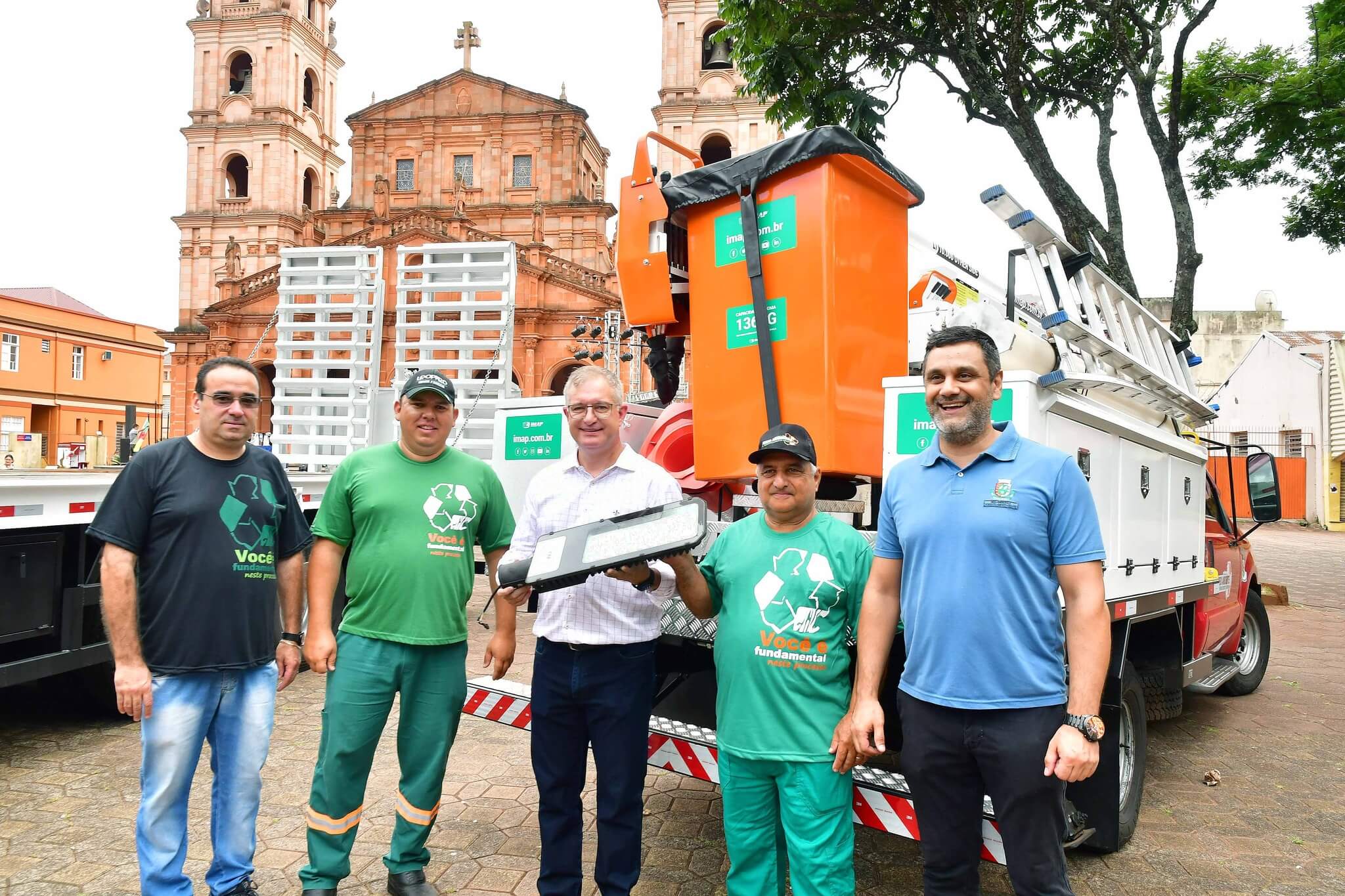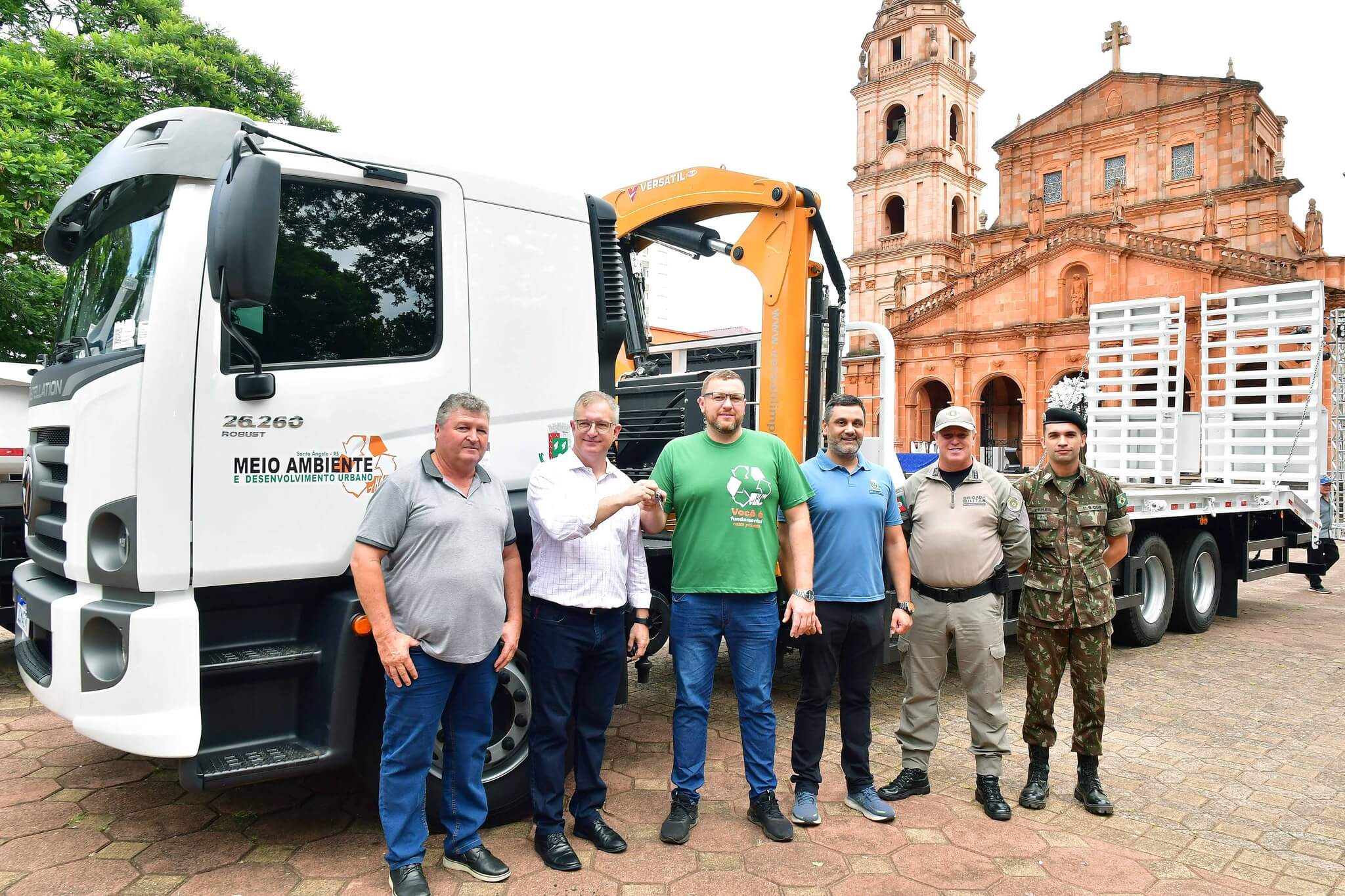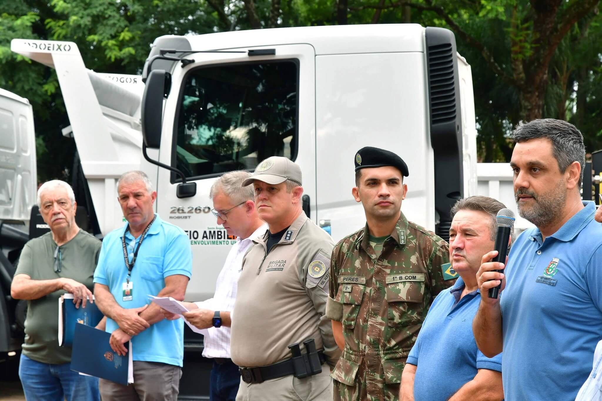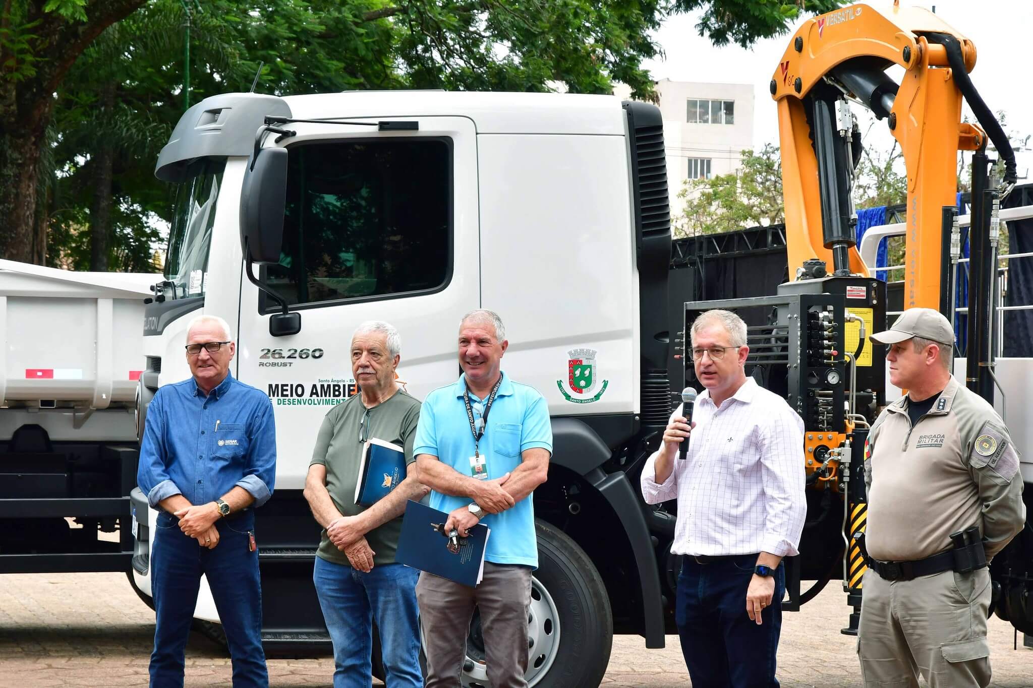 Os equipamentos serão utilizados pelas secretarias de Meio Ambiente e Desenvolvimento Urbano e de Desenvolvimento Rural. Foi entregue uma cesta aérea para serviços de iluminação pública com investimento de R$ 197.490,00. Esse equipamento foi adquirido com recursos oriundos do próprio setor.