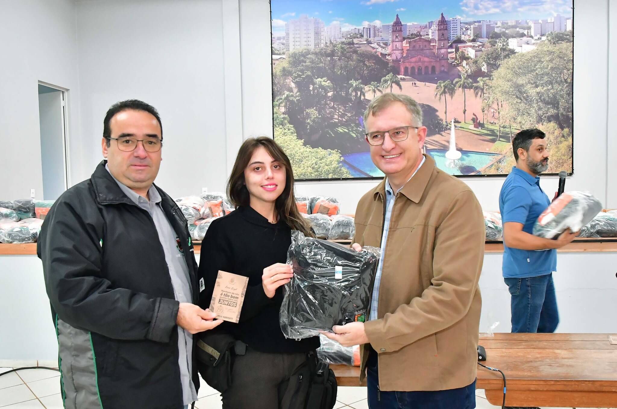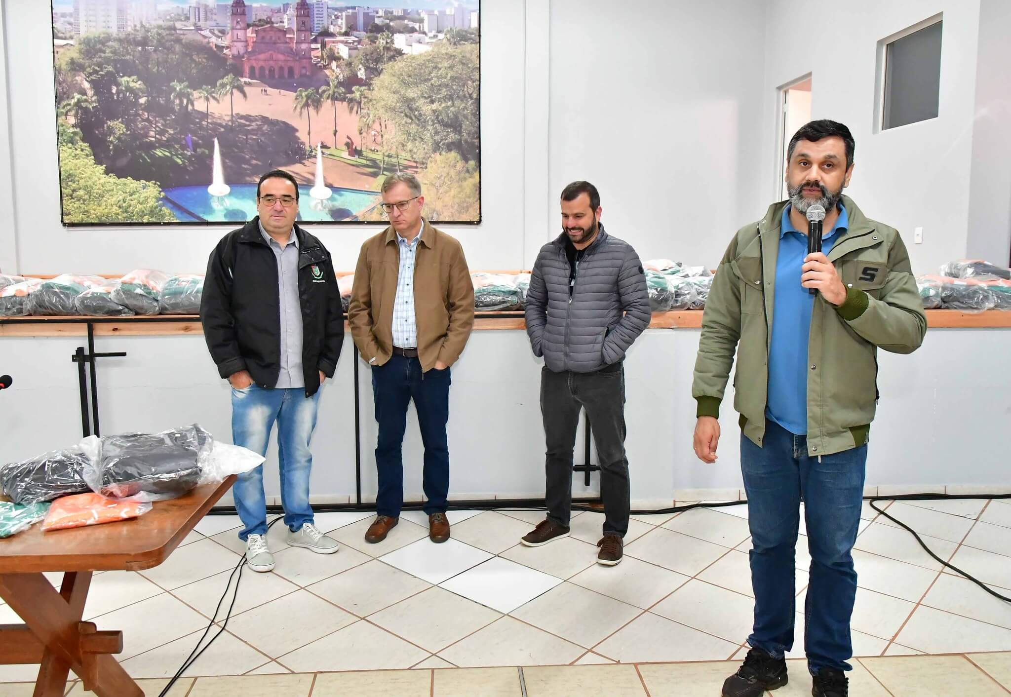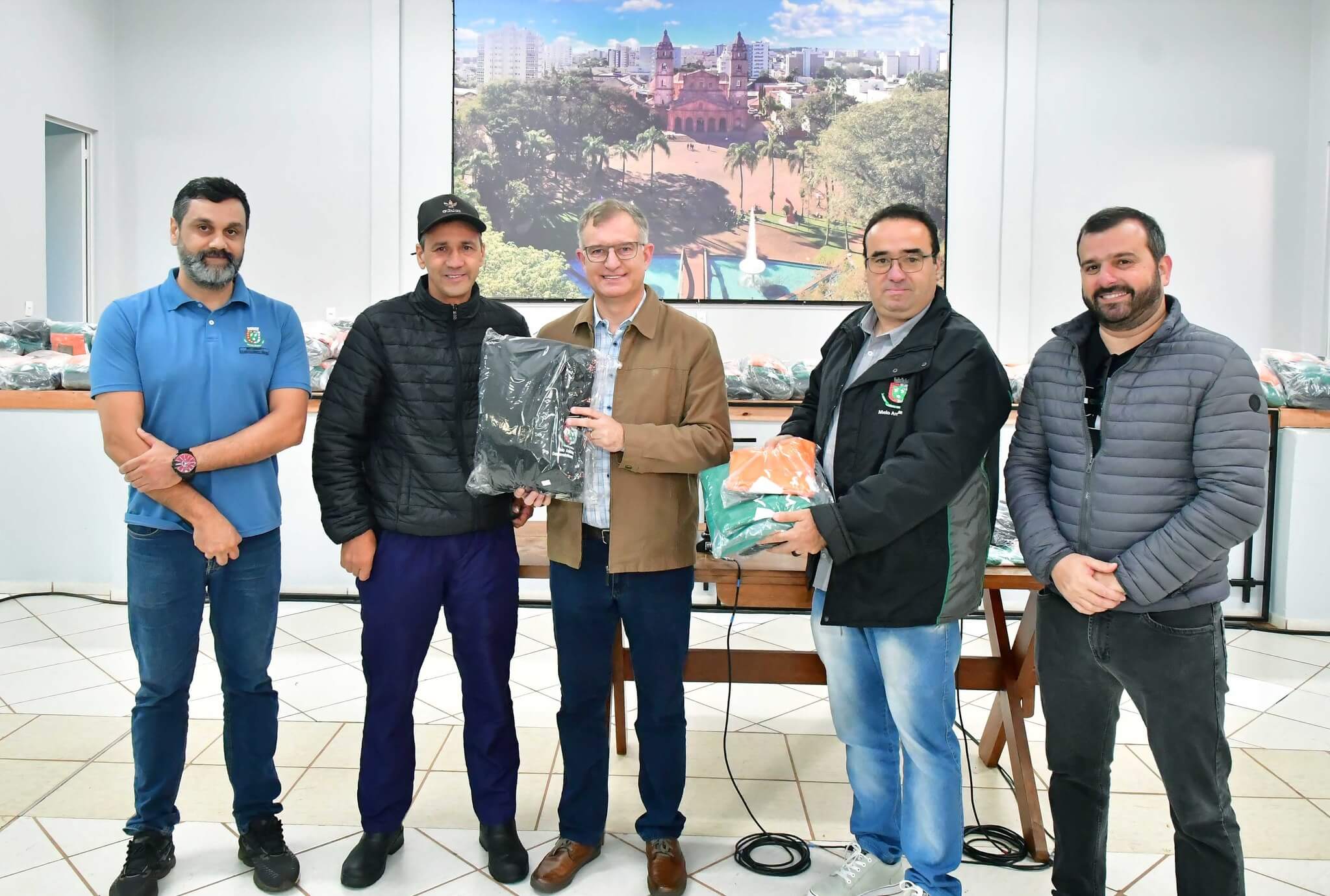 Os kits foram divididos entre operários e demais servidores. Todos contam com jaqueta, moletom, duas camisetas e no caso dos operários mais calças e jalecos com faixas refletivas. O valor investido foi de R$ 32 mil com recursos próprios e do Fundo Municipal do Meio Ambiente. São servidores que atuam nas obras em geral, nas ações de trânsito, iluminação pública e departamento dos cemitérios municipais.