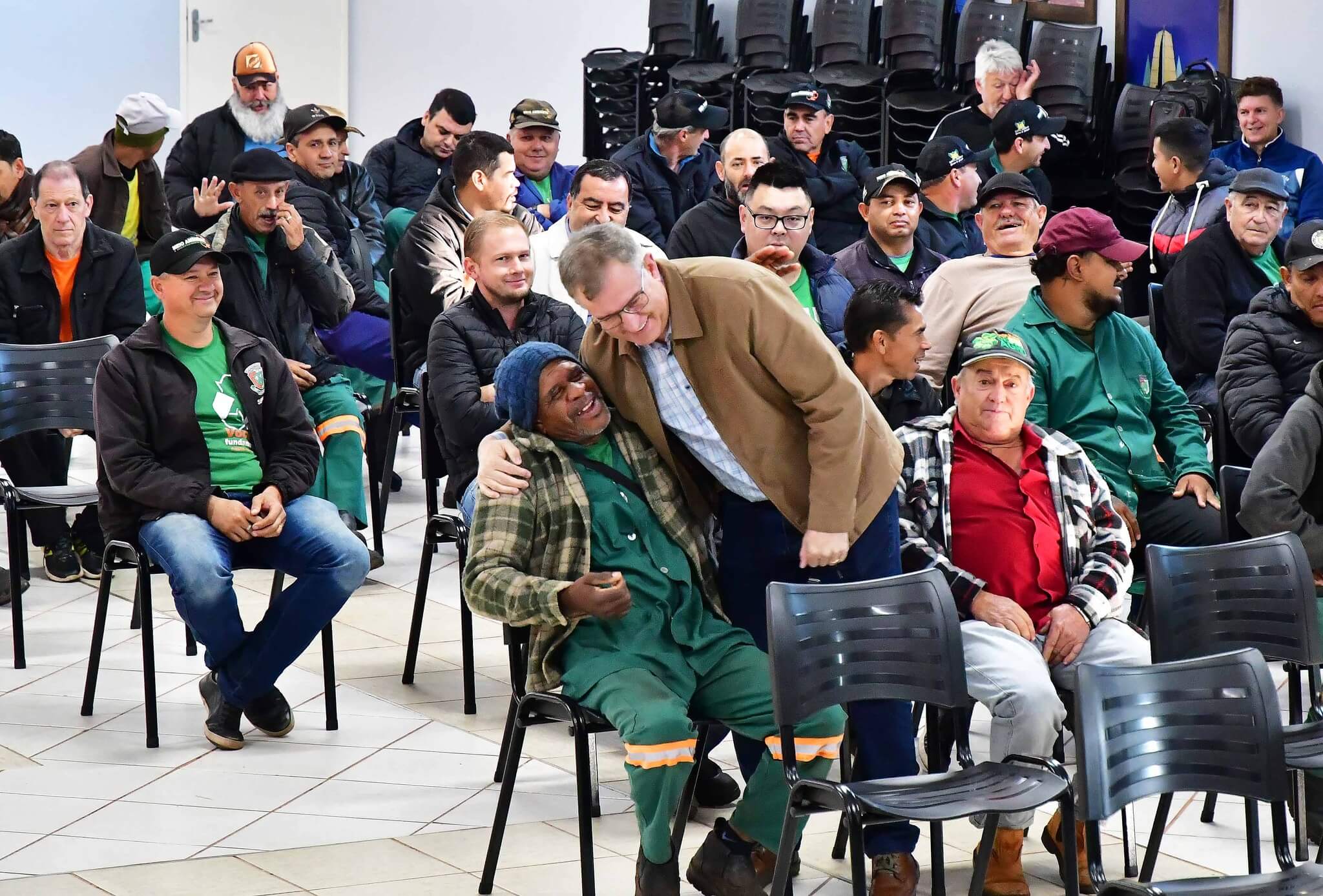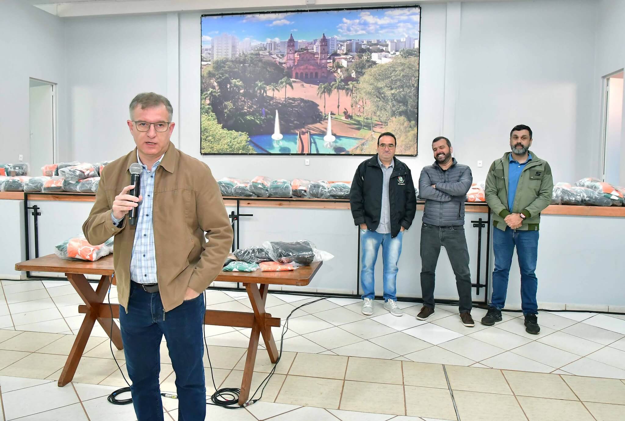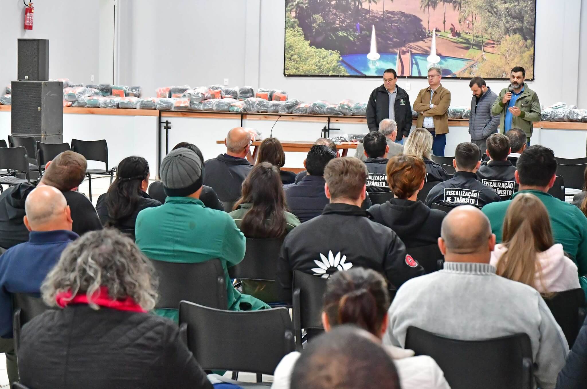 O diretor da Secretaria Municipal de Meio Ambiente e Desenvolvimento Urbano, Antônio Cardoso, coordenou a entrega dos 134 kits aos servidores. De forma simbólica, os servidores Valdir Matins e Laisi Lizot receberam os kits das mãos do prefeito.