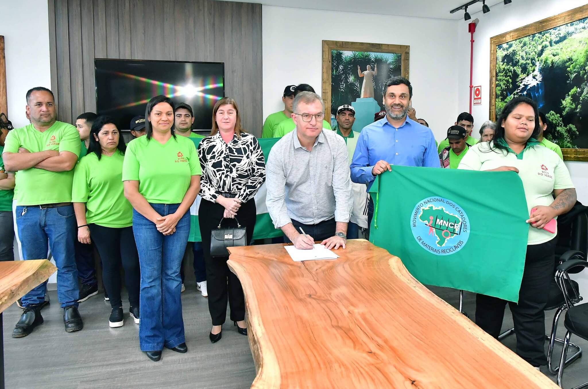Um momento histórico. Assim Carla Martiane Nicoletti, presidente da Cooperativa Ecos do Verde definiu o ato realizado na manhã desta sexta-feira, 4, no auditório da Secretaria Municipal do Meio Ambiente e Desenvolvimento Urbano. O prefeito Jacques Barbosa assinou a ordem de serviço da contratação da Cooperativa para prestação de serviços na Central de Triagem de Resíduos Domiciliares e Comerciais Recicláveis. O contrato tem valor mensal de R$ 42.499,57, o que representa um incremento anual de R$ 509 mil para a Cooperativa composta por cerca de 50 recicladores.