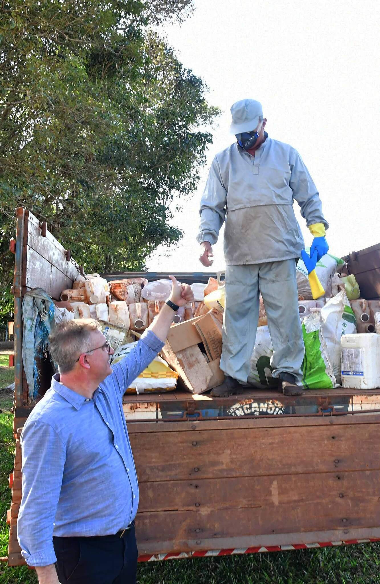 Na tarde de quarta-feira, 12, estiveram acompanhando o trabalho dos servidores na sede da comunidade de Santa Rita, Olhos D’Água, o prefeito Jacques Barbosa, os secretários municipais de Meio Ambiente e Desenvolvimento Urbano, Antônio Cardoso, e de Desenvolvimento Rural, Diomar Formenton; a promotora de Justiça Paula Mohr e o coordenador do Escritório de Interiorização de Estratégia do Ministério Público André Schnorrenberger; Márcia Dezen e Álvaro Uggeri Rodrigues, ambos da Emater; o gestor ambiental Atílio José Lerino, da Associação das Revendas de Defensivos Agrícolas de Santo Ângelo e Região (Preservar).
