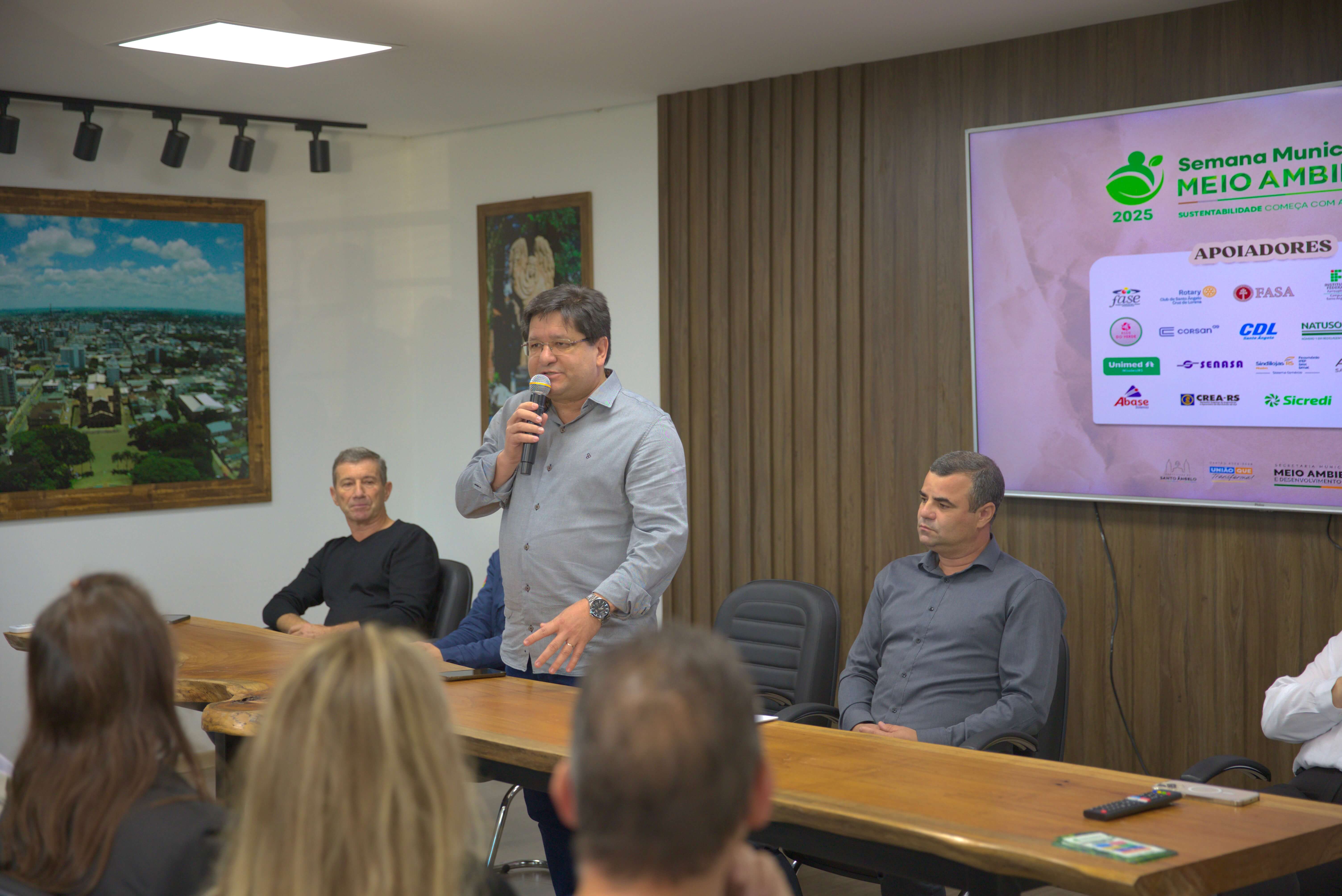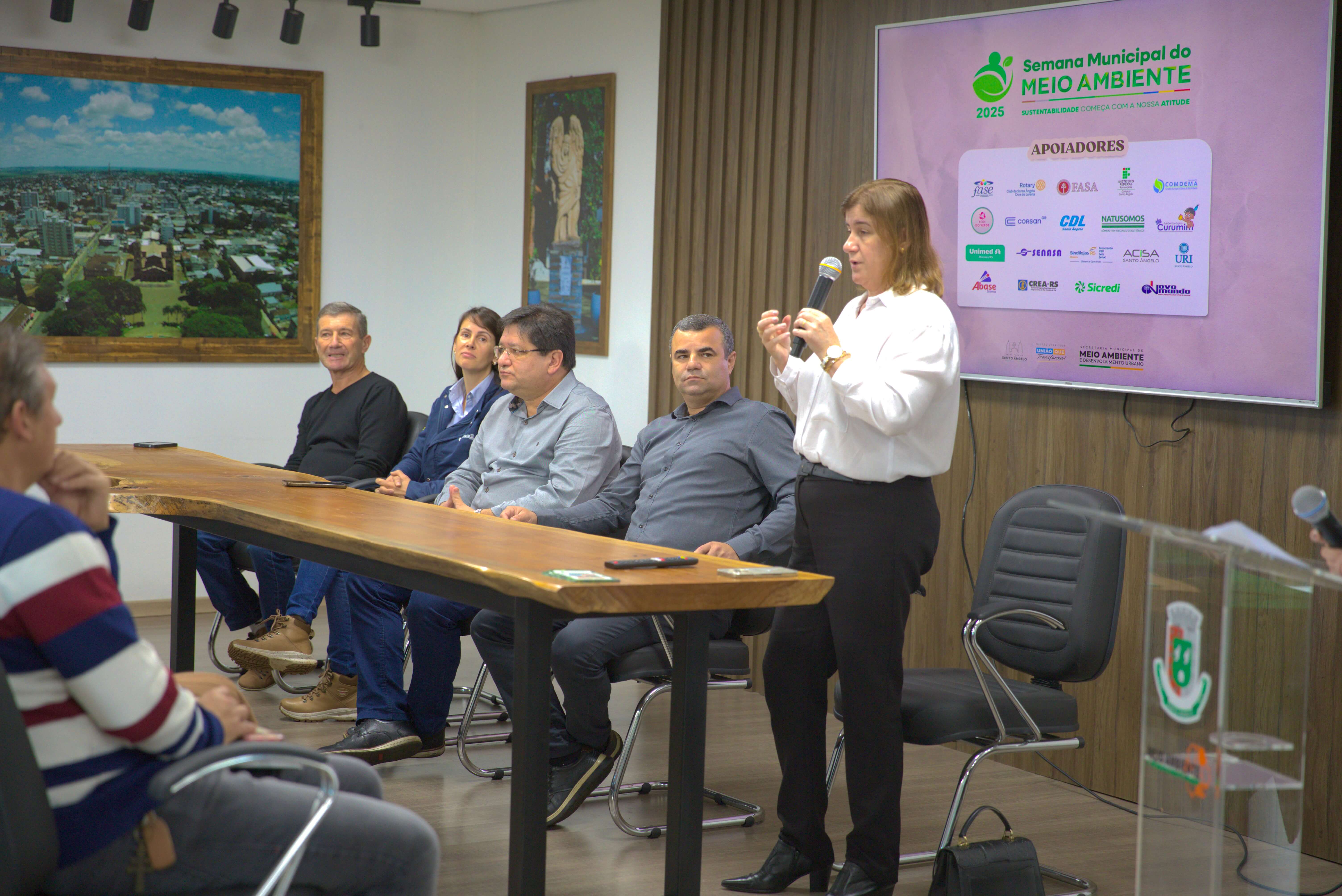 A Prefeitura de Santo Ângelo, por meio da Secretaria Municipal de Meio Ambiente e Desenvolvimento Urbano (Semmadu), promoveu, na manhã desta quinta-feira (5), a abertura oficial da Semana Municipal do Meio Ambiente 2025. A solenidade foi realizada no auditório da Semmadu e contou com a presença de autoridades, lideranças locais e representantes de entidades parceiras.
