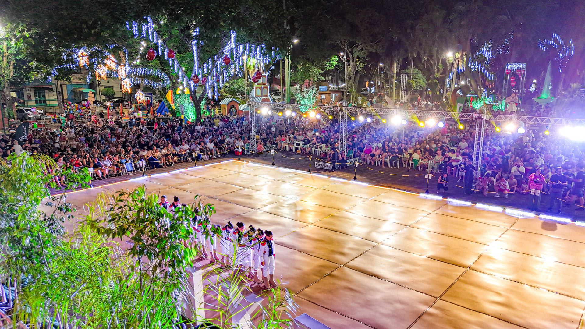 Já no domingo (07), a Praça Pinheiro Machado voltou a ficar lotada. A programação iniciou com uma mateada, reunindo famílias e grupos de amigos em um clima de convivência, seguida pela grande atração da noite: o espetáculo “Nossas Origens”, apresentado pelo Grupo de Patinação Style. Em uma narrativa que percorreu a formação do povo missioneiro desde a chegada dos primeiros colonizadores até os tempos atuais, o grupo emocionou os milhares de presentes com arte, movimento e história.