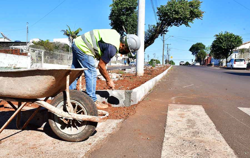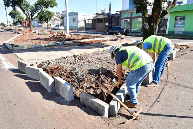 Meio-fios dos canteiros já estão sendo colocados e próxima etapa será a o plantio de gramíneas