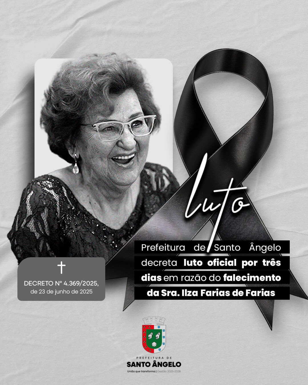 A Administração Municipal de Santo Ângelo decretou luto oficial de três dias, a partir desta segunda-feira (23), em razão do falecimento da Sra. Ilza Farias de Farias, ocorrido no dia 22 de junho de 2025. A medida reconhece sua dedicação ao serviço público e à causa social, que marcou profundamente a comunidade regional.