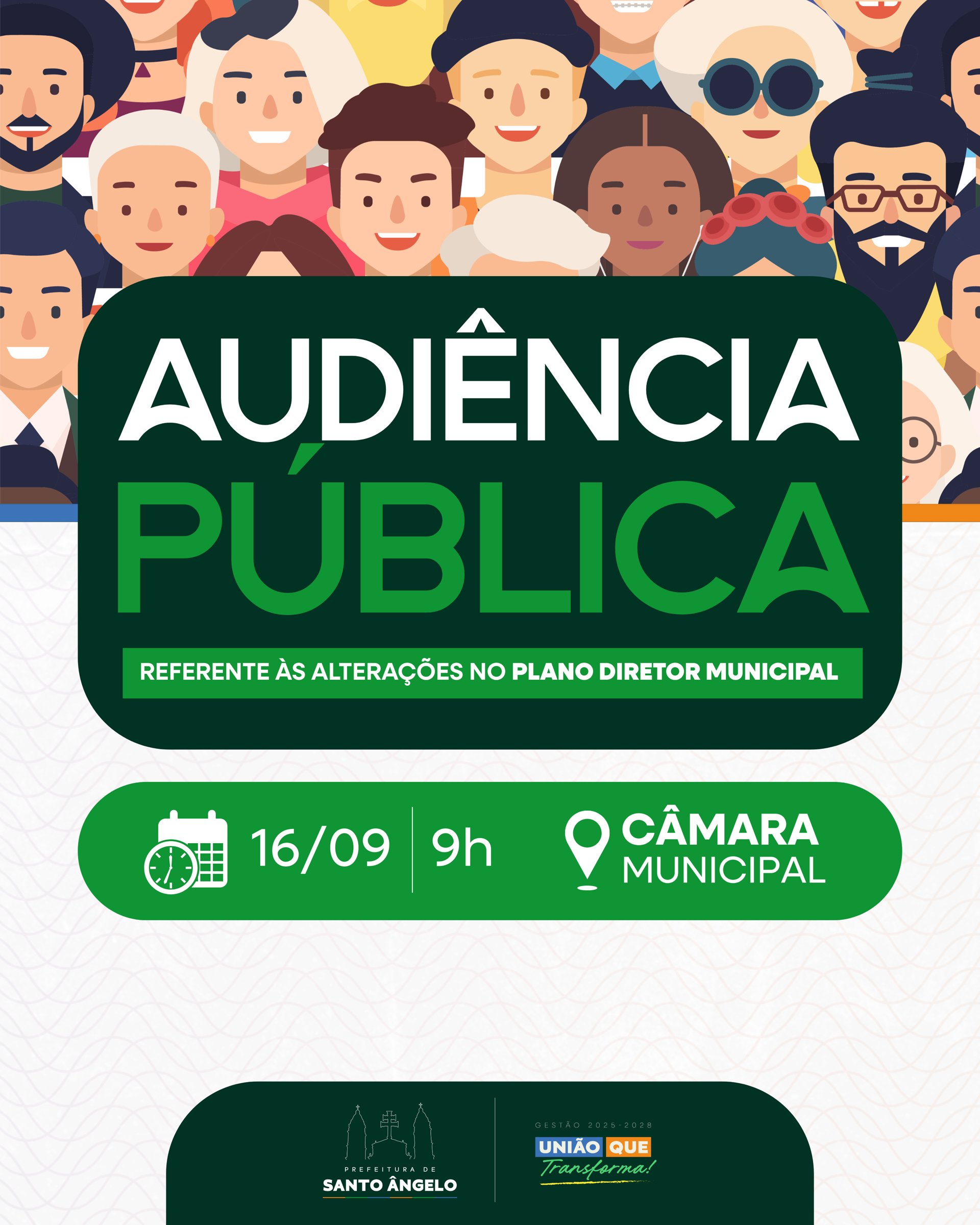O Município de Santo Ângelo convida a comunidade para participar da Audiência Pública que irá tratar da atualização do Plano Diretor Municipal. O novo encontros será realizado nesta terça-feira (16), às 9h, na Câmara Municipal de Vereadores.