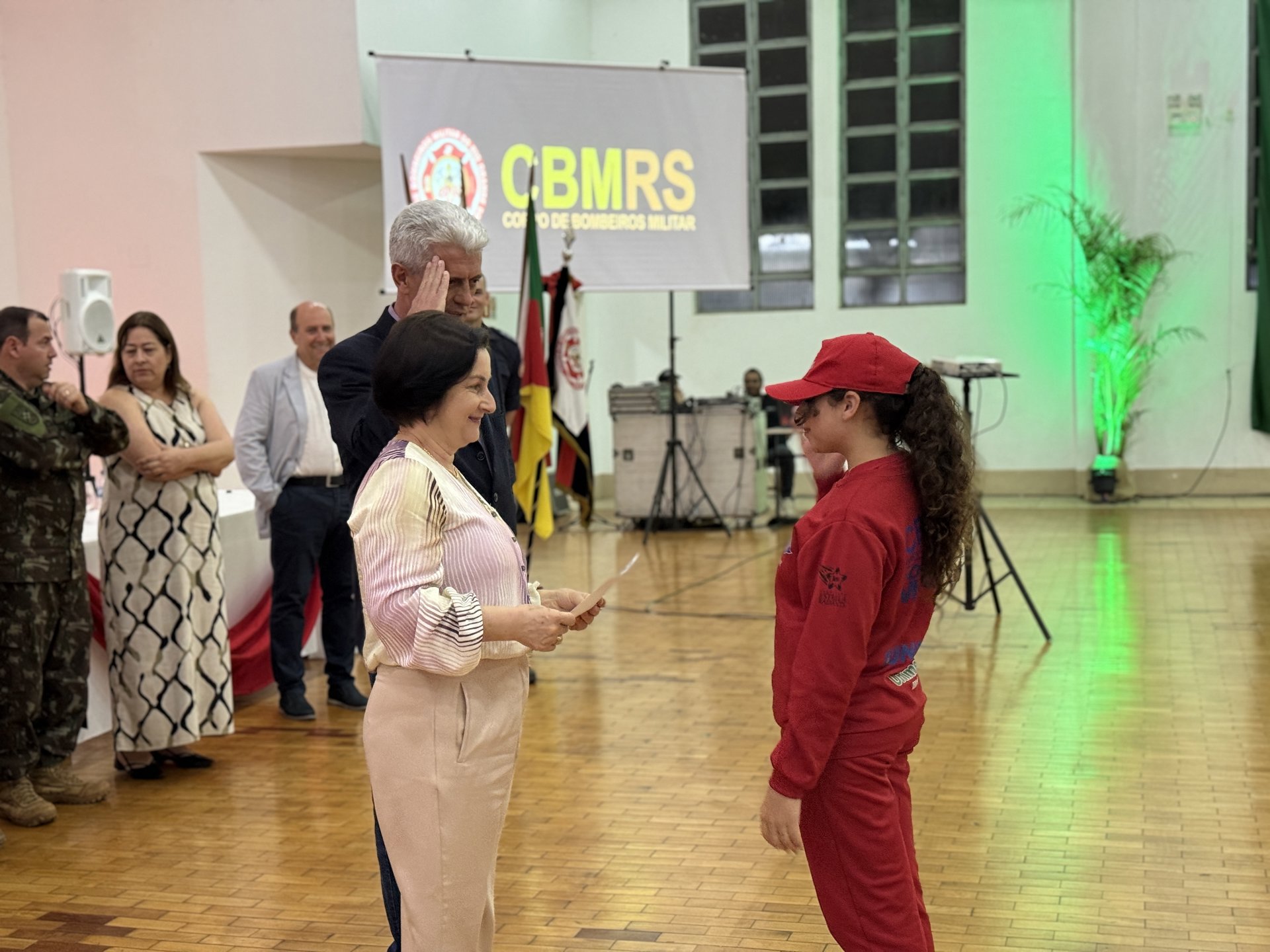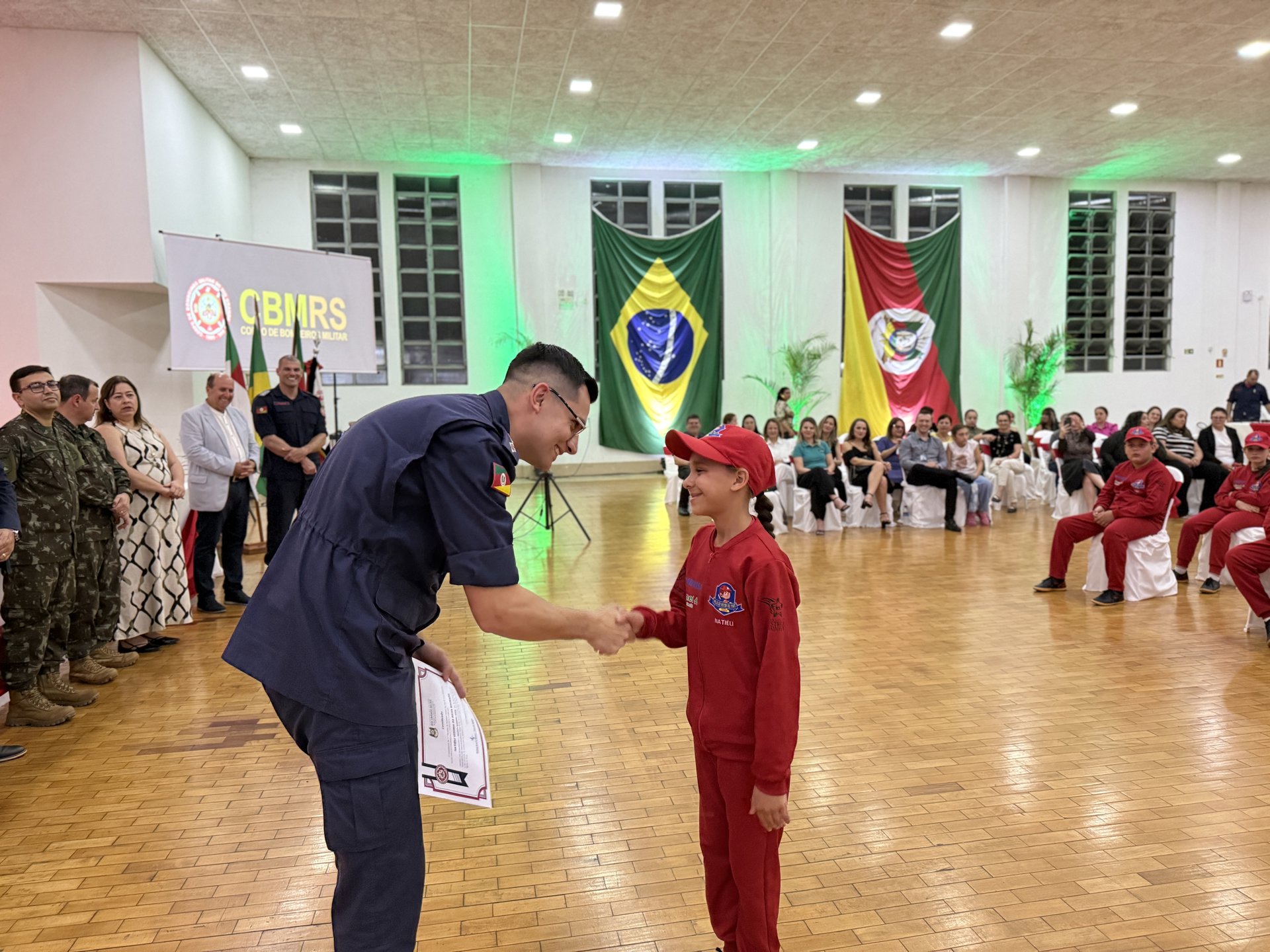 A iniciativa é uma ação de educação preventiva desenvolvida pelo Corpo de Bombeiros Militar do Rio Grande do Sul (CBMRS), que tem como objetivo difundir conhecimentos sobre riscos, prevenção de incêndios e acidentes, além de promover valores de cidadania e responsabilidade social. Nesta edição, participaram estudantes das Escolas Municipais de Ensino Fundamental Miguel Bosniak e Gildo Castelarim, totalizando 19 formandos.