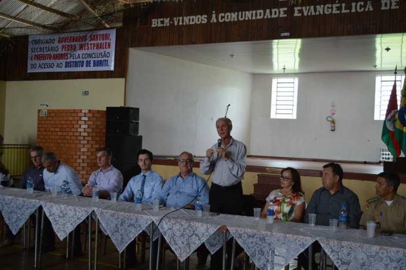 Foram inauguradas nesta sexta-feira, 2, as obras de pavimentação asfáltica da estrada do Distrito de Buriti. Além do prefeito Valdir Andres, o ato teve a presença do secretário dos Transportes do Rio Grande do Sul, Pedro Westphalen e do deputado estadual, Eduardo Loureiro.