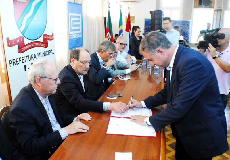 O governador do Estado José Ivo Sartori e o prefeito Jacques Barbosa e o assinaram nesta sexta-feira, 16, no Salão Farroupilha da Prefeitura de Ijuí, a ordem de serviço para a execução de obras da rede coletora, ramais prediais, estação de bombeamento e linha de recalque do Bairro Pilau, em Santo Ângelo. A obra está orçada em R$ 2,5 milhões, recursos do Fundo Municipal de Gestão Compartilhada (FMGC) e a previsão de conclusão é de oito meses.