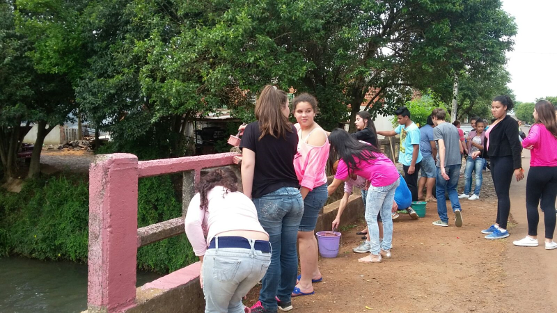 A Escola Municipal Liberato Salzano Vieira da Cunha, do bairro São Carlos, aderiu às ações do Outubro Rosa 2015. Nesta terça-feira, 6, estudantes do 8º Ano acompanhados pelos professores de Ciências e de Educação Física, Vanessa Immich e Afonso Freitas realizaram a pintura da ponte sobre o rio Itaquarinchim na Rua São Carlos.