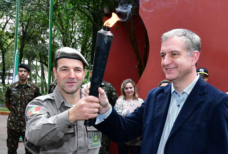 O evento teve início com a chegada da centelha do Fogo Simbólico, conduzida até a Praça Leônidas Ribas pelos grupos escoteiros Medianeira, do Ar Ventos do Sul e pelos alunos do Colégio Tiradentes da Brigada Militar. O capitão da Brigada Militar, Sirlando da Ponte, Comandante do Colégio Tiradentes, fez a entrega do Fogo Simbólico ao prefeito Jacques que procedeu ao acendimento da Pira da Pátria.