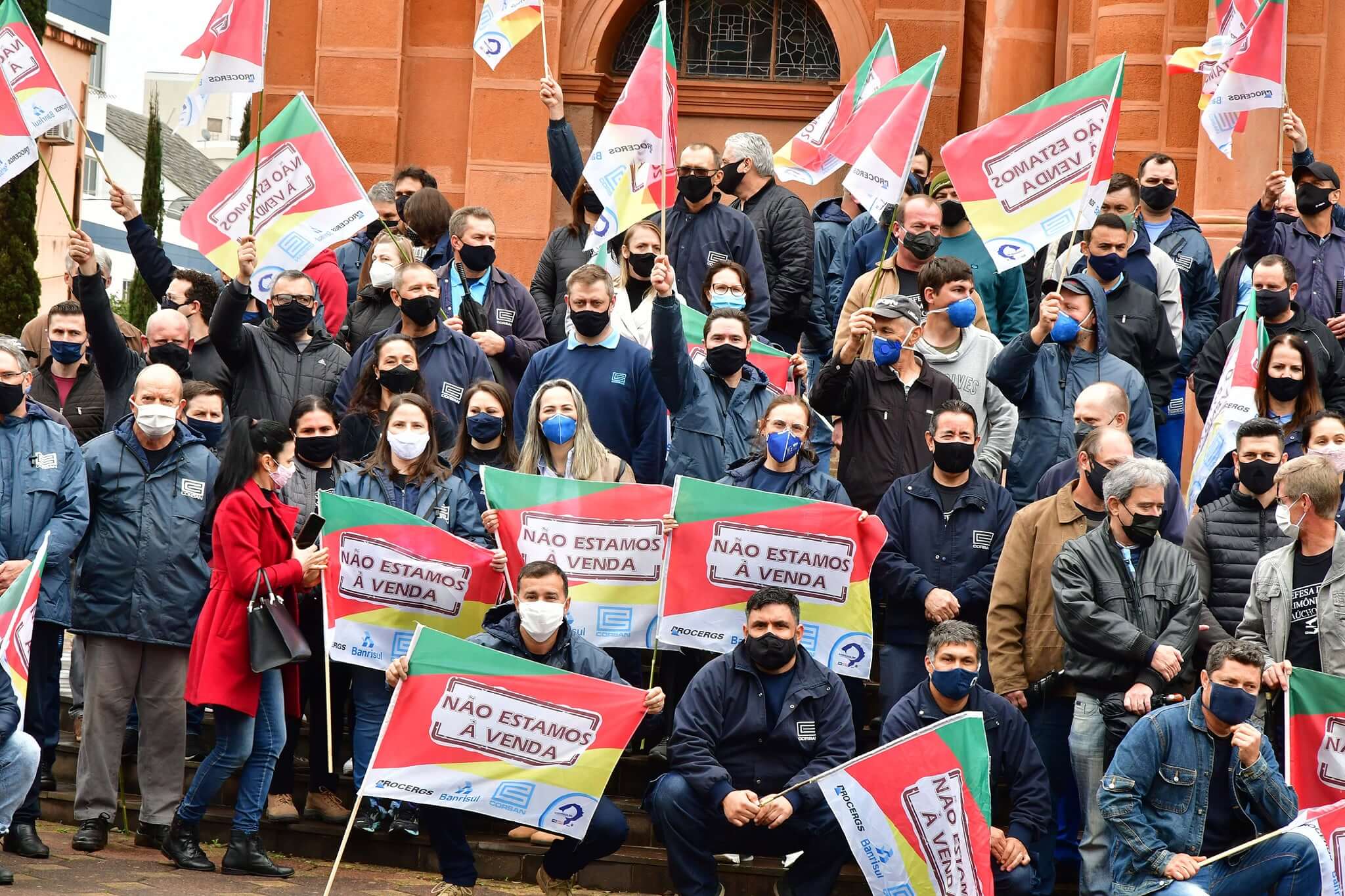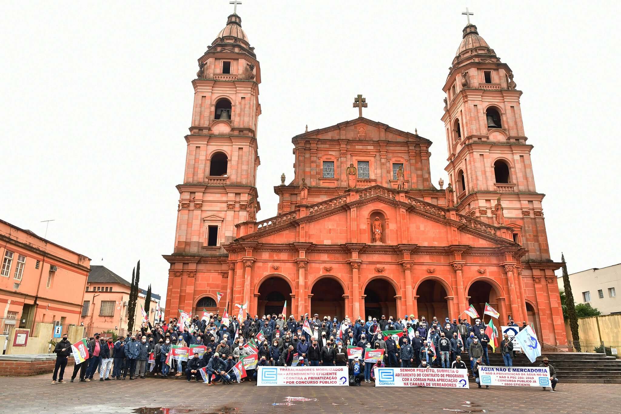 No fim da manhã desta terça-feira (10), o prefeito Jacques Barbosa recebeu em frente ao prédio da Prefeitura servidores da Corsan que realizaram um ato contra o projeto de privatização da Companhia proposto pelo Governo do Estado.