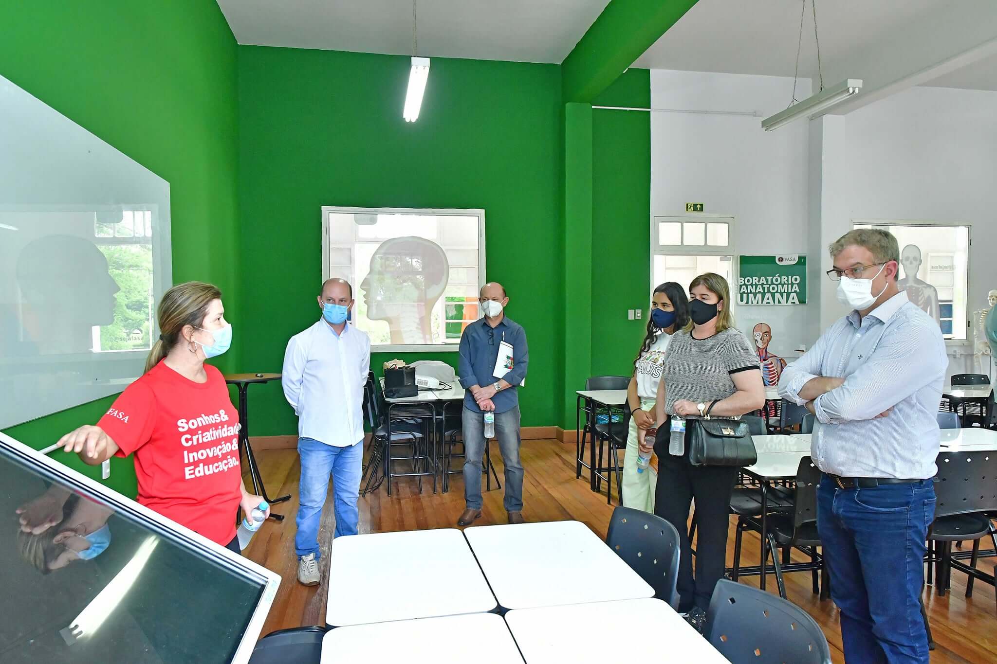 A comitiva percorreu toda a extensão da faculdade, conhecendo os laboratórios e espaços de aprendizagem prática dos cursos de graduação, a estrutura física e a área da Fazenda Escola.