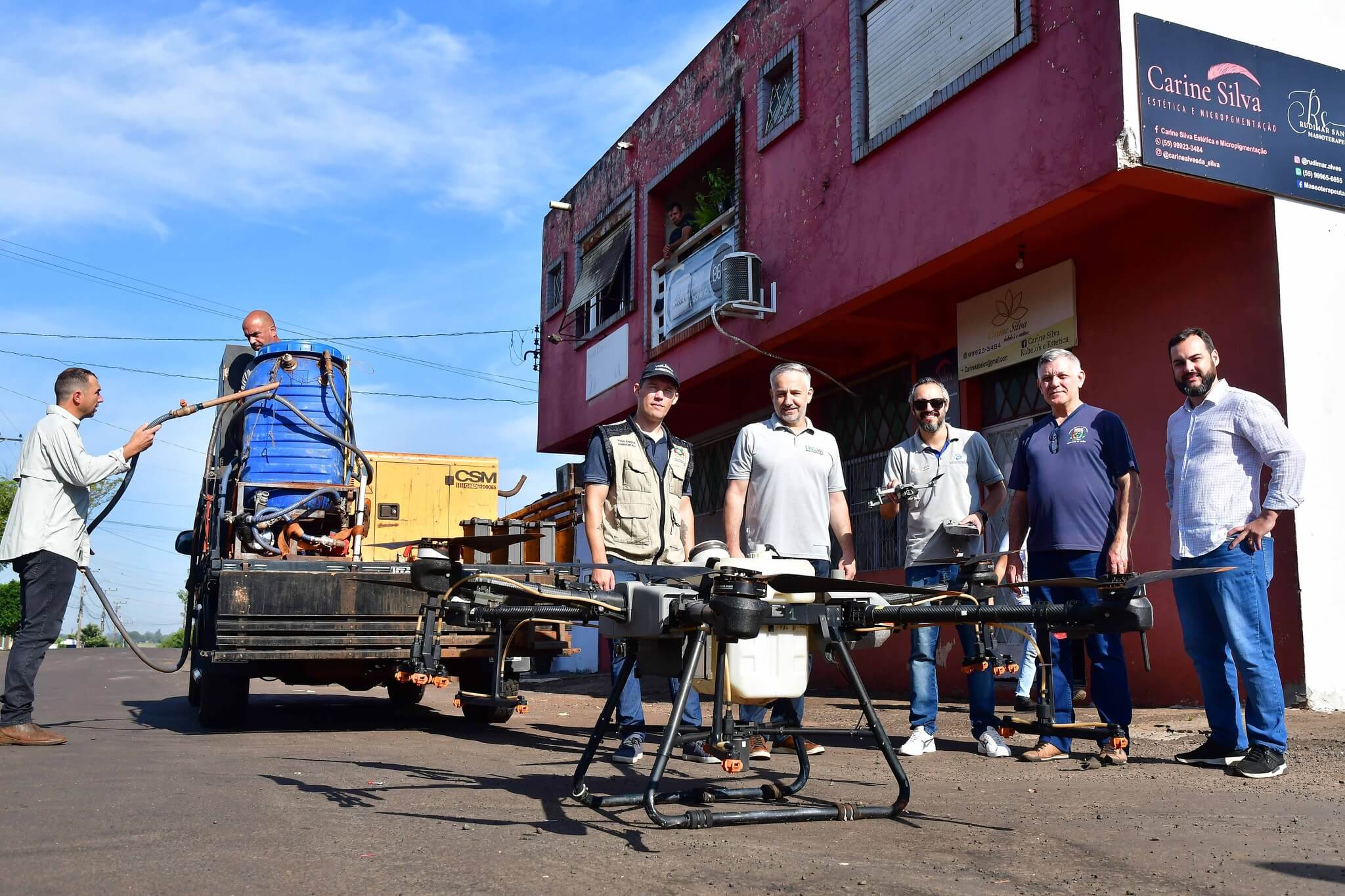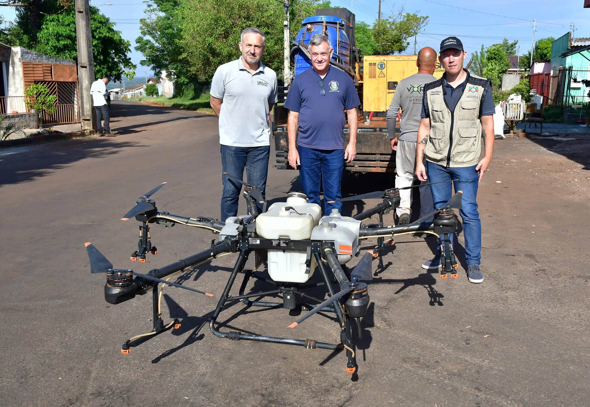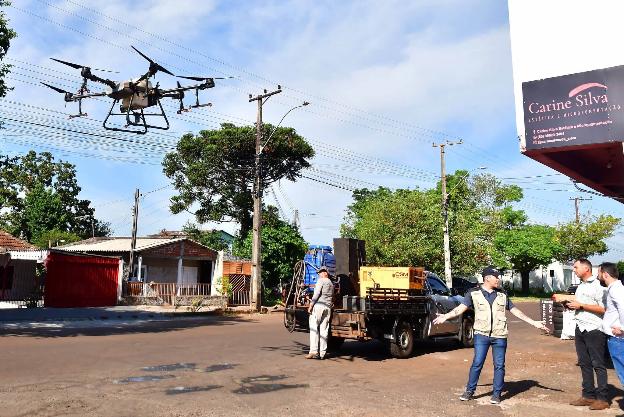 A iniciativa pioneira teve como local o Bairro Ditz. Foi utilizado o BTI, líquido biológico que não é tóxico aos seres humanos e animais domésticos e que elimina as larvas do Aedes aegypti. Rodrigo afirma que foram feitas experiências com a borrifação via drone no Parque de Exposições Siegfried Ritter e que os resultados foram amplamente positivos.