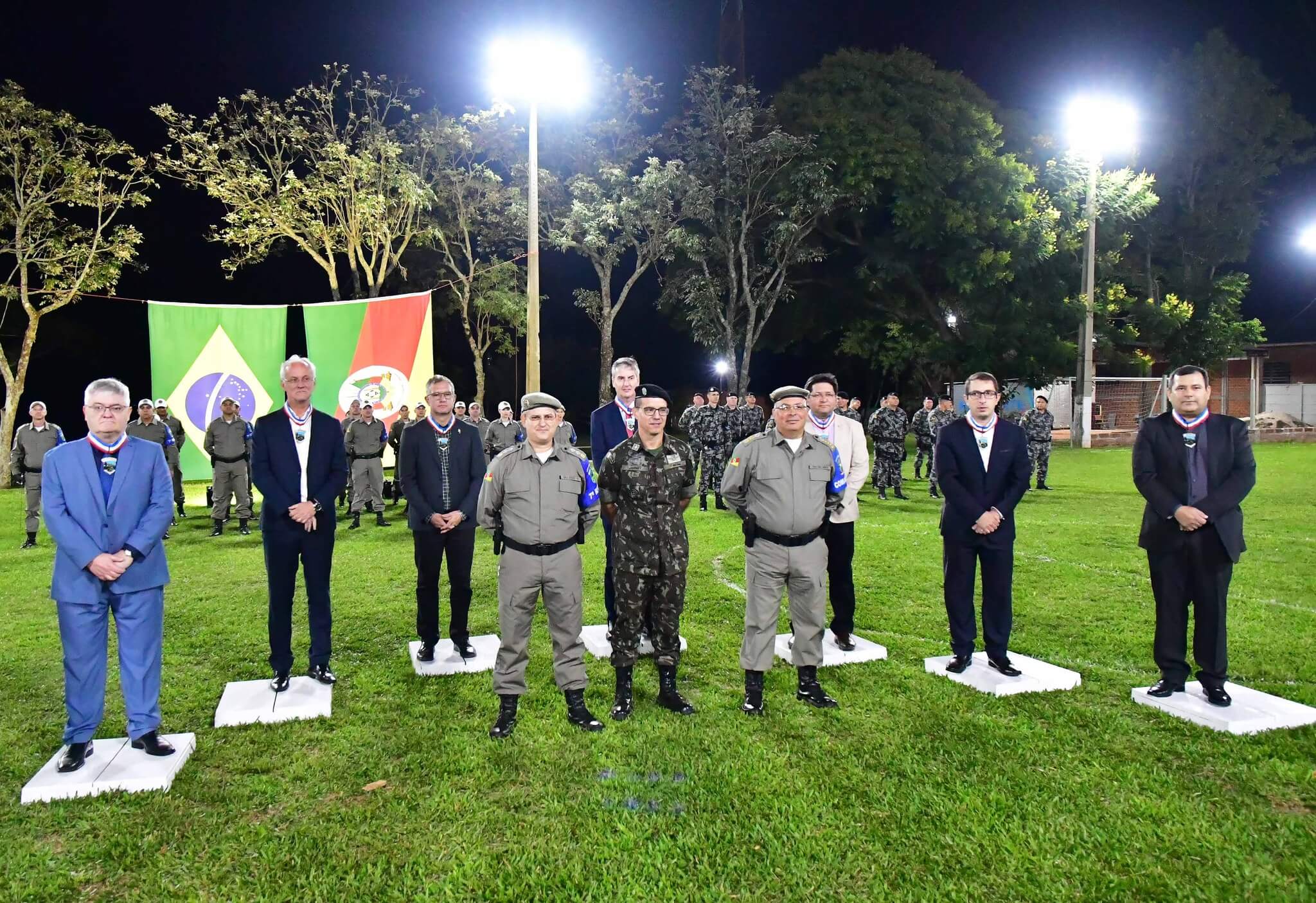 Na noite da última sexta-feira foi realizada nas dependências do 7º Regimento de Polícia Montada (RPMon) a solenidade de formatura de novos policiais militares e entrega de honraria a autoridades, oficiais da Brigada Militar, servidores públicos e empresários.