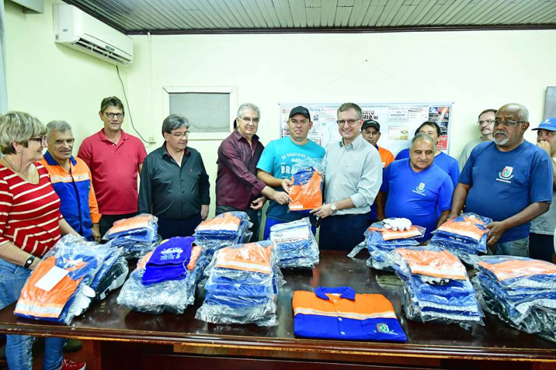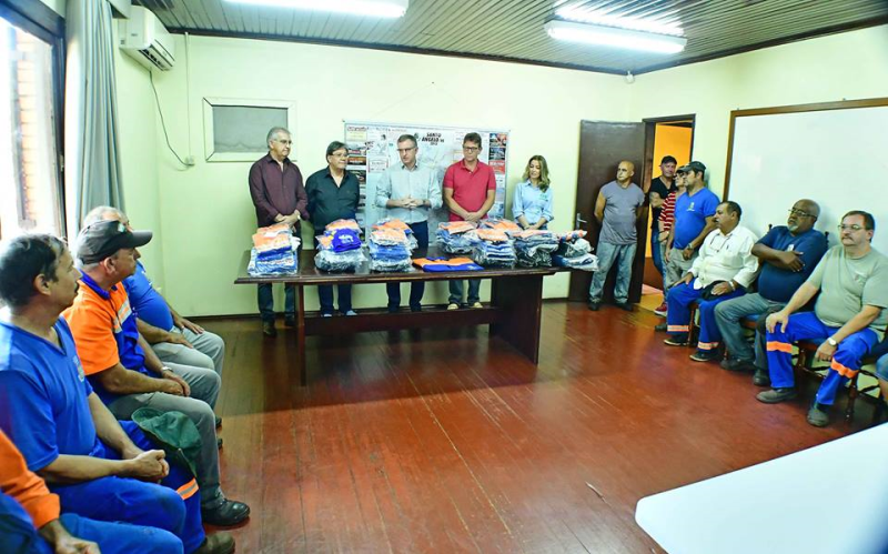 Os servidores da Secretaria Municipal de Obras e Serviços Urbanos receberam na terça-feira, 23, um kit com dois conjuntos de uniformes, calçado e Equipamentos de Proteção Individual (EPI). A entrega foi realizada pelo prefeito Jacques Barbosa, o secretário de Administração, Hélio costa, o secretário de Obras e Serviços Urbanos, Adolar Queiroz, o coordenador da pasta Valter Larri Holsbach e a técnica em Segurança do Trabalho, Leandra Copetti Sisti.