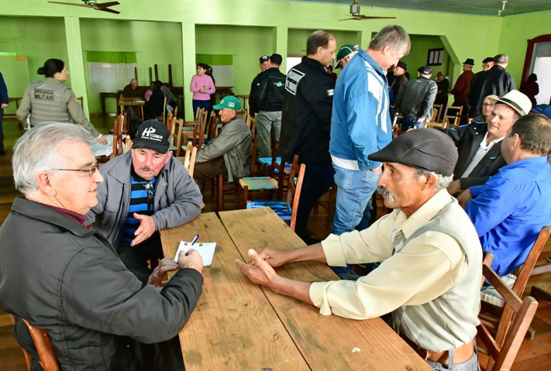 Lideranças de comunidades do interior estiveram reunidas na tarde dessa segunda-feira, 15, para tratar da segurança pública e de outras demandas. A reunião foi realizada no Clube Flor de Maio e contou com as presenças do vice-prefeito Bruno Hesse; tenente Andréia Patrícia da Silva Santos, representando o comando do 7º Regimento de Polícia Montada (RPMon); secretários municipais de Obras, Adolar Queiroz; dos Transportes, João Terra do Amaral; de Meio Ambiente, Francisco da Silva Medeiros e o diretor do Departamento Municipal de Trânsito (DMT), Gerson Rodrigues; chefe de Gabinete, Airton Peruzzi; presidentes do Sindicato Rural, Laurindo Nikititz e do Sindicato dos Trabalhadores Rurais, Daniel Casarin.