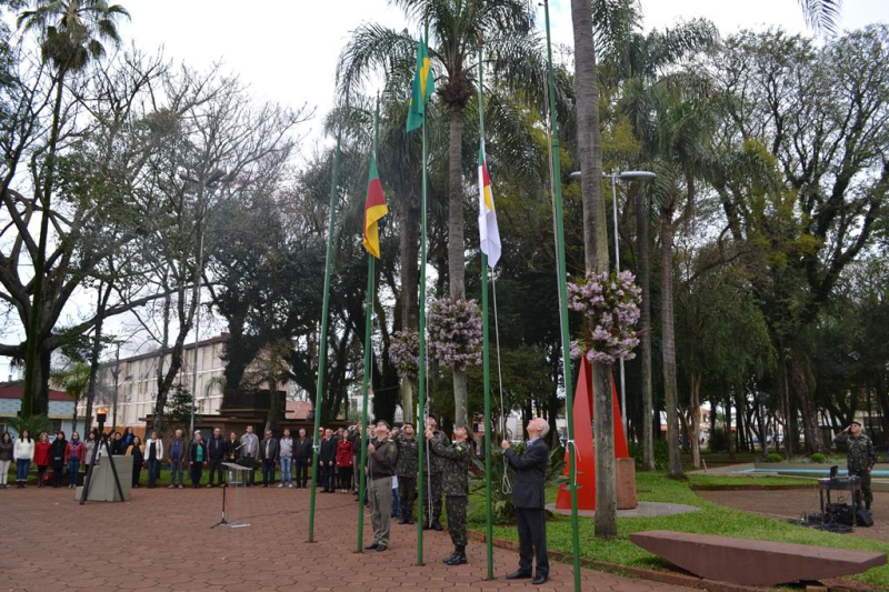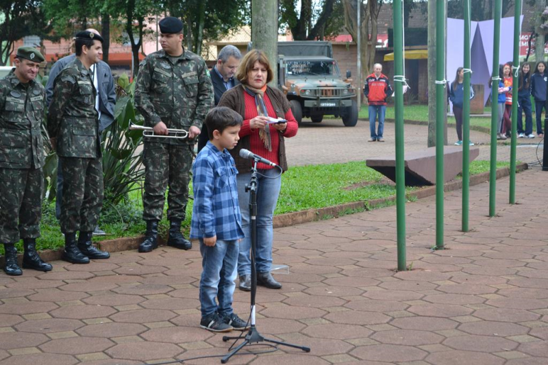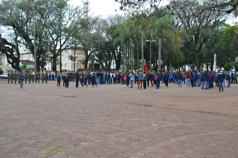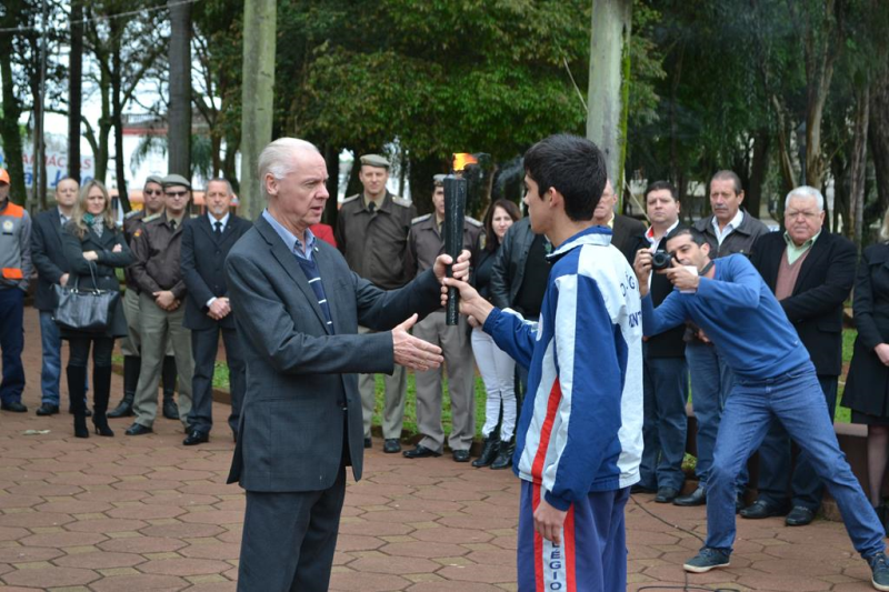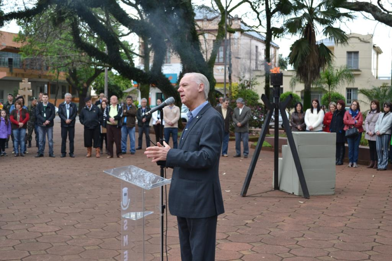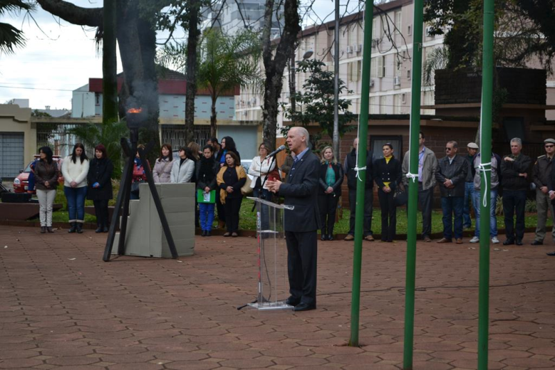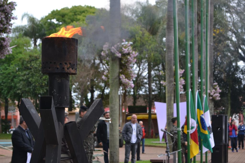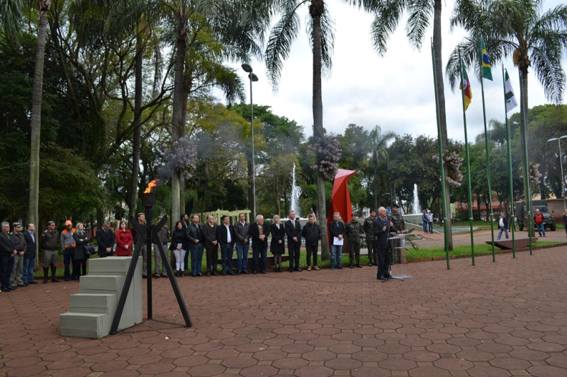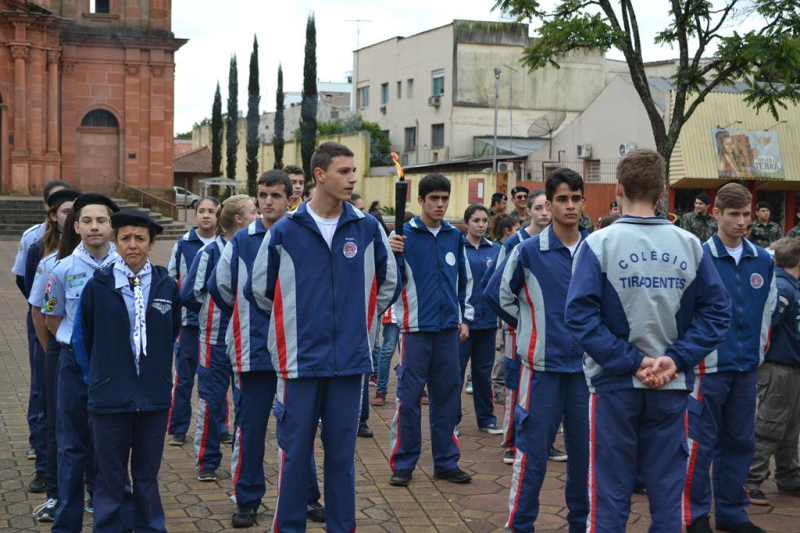 A Praça Pinheiro Machado sediou nesta quinta-feira, 1º, a abertura oficial da Semana da Pátria 2016 da Capital das Missões. Durante a solenidade, o prefeito de Santo Ângelo, Valdir Andres acendeu a Pira da Pátria com a centelha do Fogo Simbólico que foi conduzida do Colégio Tiradentes até o Centro Histórico por alunos do Colégio Militar Tiradentes e integrantes do Grupo Escoteiro Ar Ventos do Sul, Grupo de Escoteiros Medianeira e de Clubes de Desbravadores.