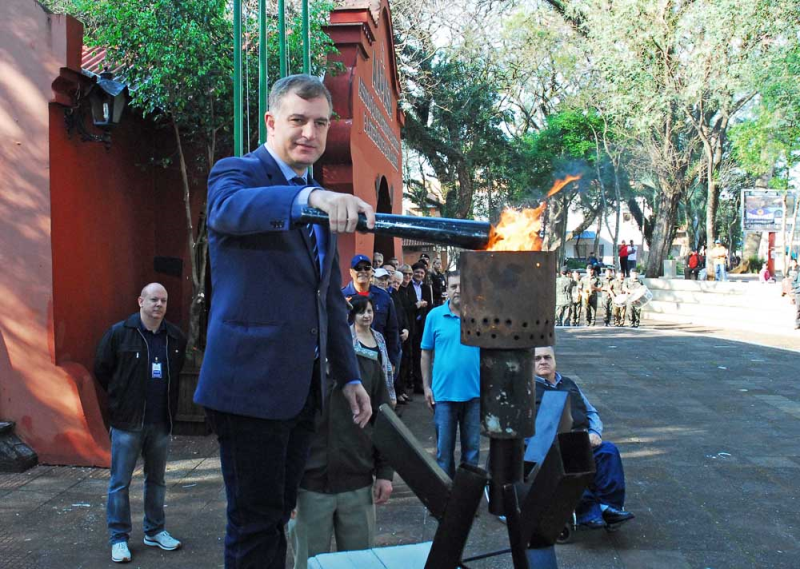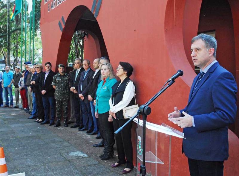 Em solenidade realizada na manhã desta sexta-feira, dia 1º, na Praça Leônidas Ribas, o prefeito Jacques Barbosa, o vice-prefeito Bruno Hesse, o presidente da Câmara de Vereadores Adolar Queiroz, o secretário municipal de Educação Valdemir Roepke e demais autoridades civis e militares de Santo Ângelo abriram oficialmente a Semana da Pátria que em 2017 comemora os 195 anos da Independência do Brasil, homenageando o Centenário da morte do sanitarista Oswaldo Cruz, em nível nacional. No Estado o tema da Semana da Pátria é a Corrida do Fogo Simbólico da Pátria e o Movimento Tradicionalista Gaúcho (MTG), homenageando a 80ª Corrida do Fogo Simbólico da Pátria e os 70 Anos da Chama Crioula. No município o desfile cívico terá como temática a Responsabilidade Ambiental: Santo Ângelo e Você Preservando o Futuro.