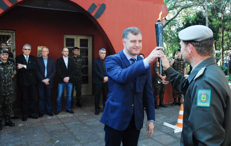 Na abertura o capitão Sirlando da Ponte, comandante do Colégio Tiradentes, recebeu o fogo simbólico da Pátria das mãos dos grupos de escoteiros Medianeira, Ventos do Sul, Clube de Desbravadores e alunos do Colégio da Brigada Militar e repassou ao prefeito Jacques para o acendimento da Pira da Pátria. A chama da Pátria chegou a Santo Ângelo em 23 de agosto, trazida pela Liga de Defesa Nacional do Rio Grande do Sul.