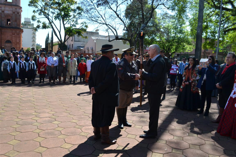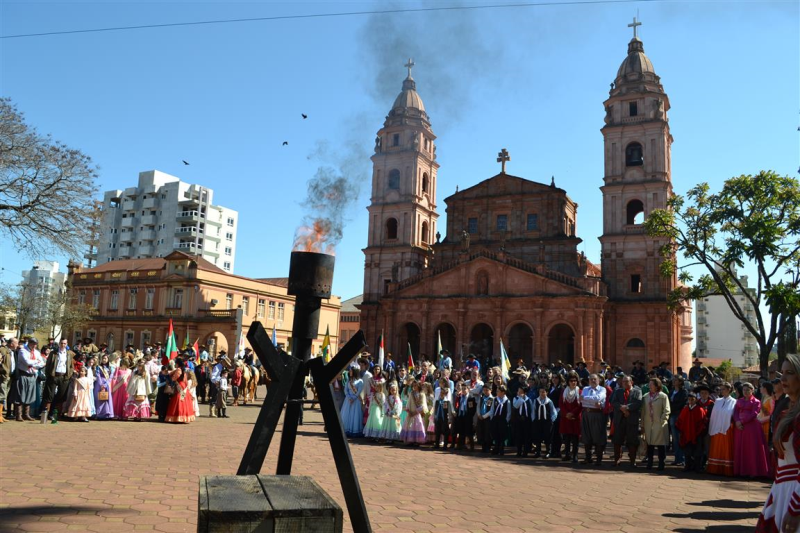Durante a solenidade, a Chama Crioula foi recebida no Centro Histórico após ser conduzida por um grupo de 32 cavalarianos de São Miguel das Missões. Integrando a programação foram realizadas apresentações artísticas e a distribuição da Chama Crioula a todas às entidades tradicionalistas.