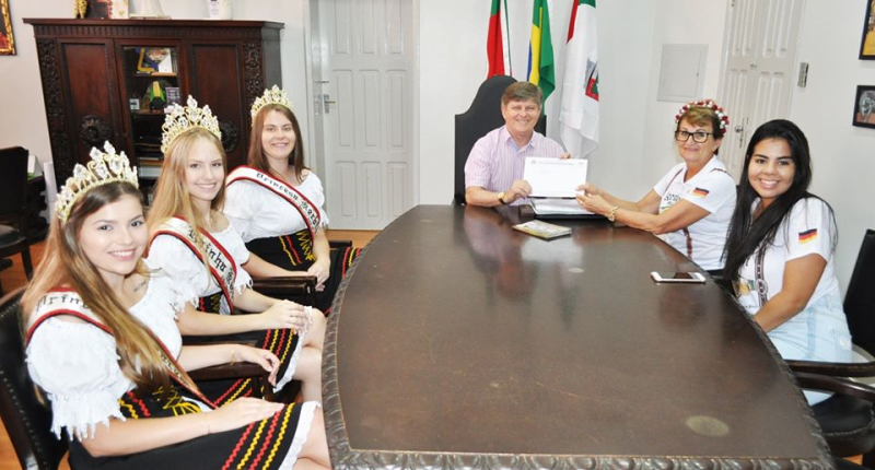 O secretário da Fazenda Luis Alberto Voese recebeu na manhã desta quinta-feira (09) uma comitiva de São Paulo das Missões, para oficializar o convite da 27ª Kerbfest Missões ao Governo Municipal. São Paulo das Missões é reconhecida como a Capital Nacional do Jogo do Barril, e realizará sua festa de culto às tradições germânicas no período de 24 a 26 de janeiro.